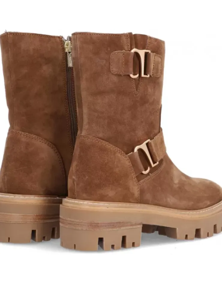 Bota Para Mujer Alpe Monza, Fabricada En Piel (Baby Silk) De Color Cuero Con Tacon De 5 Cm, Suela Antideslizante Y Puntera Redonda, Con Cierre Mediante Cremallera Y Cana Baja.