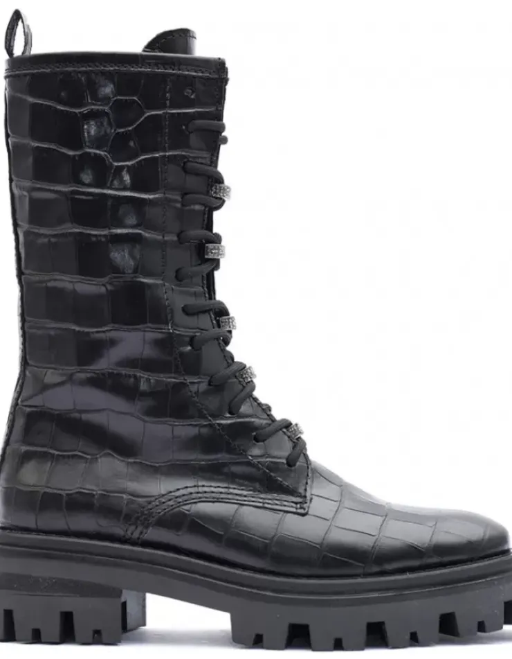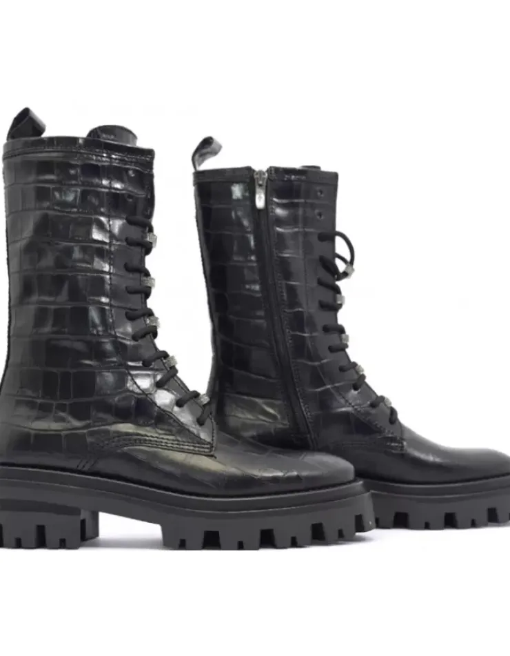 Bota Para Mujer Alpe Monza, Fabricada En Piel (Coco) De Color Negro Con Tacon De 5 Cm, Suela Antideslizante Y Puntera Redonda, Con Cierre Mediante Cremallera Y Cana Media.