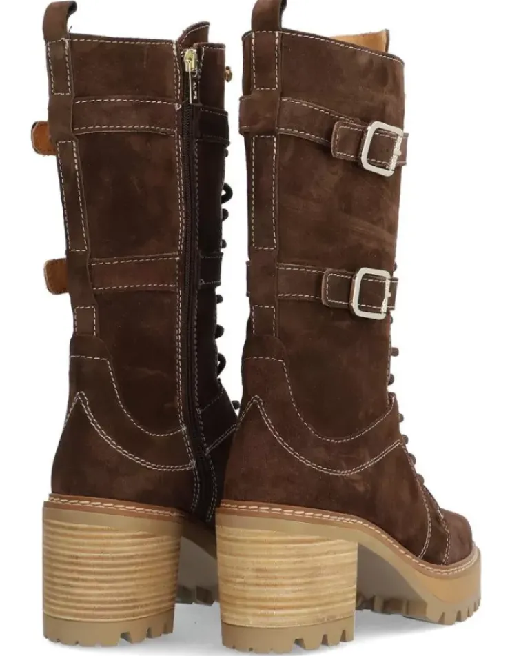 Bota Para Mujer Alpe New Amelie, Fabricada En Piel (Baby Silk) De Color Arabica Con Tacon De 7 Cm, Suela Antideslizante Y Puntera Redonda, Con Cierre Mediante Cremallera Y Cana Alta.