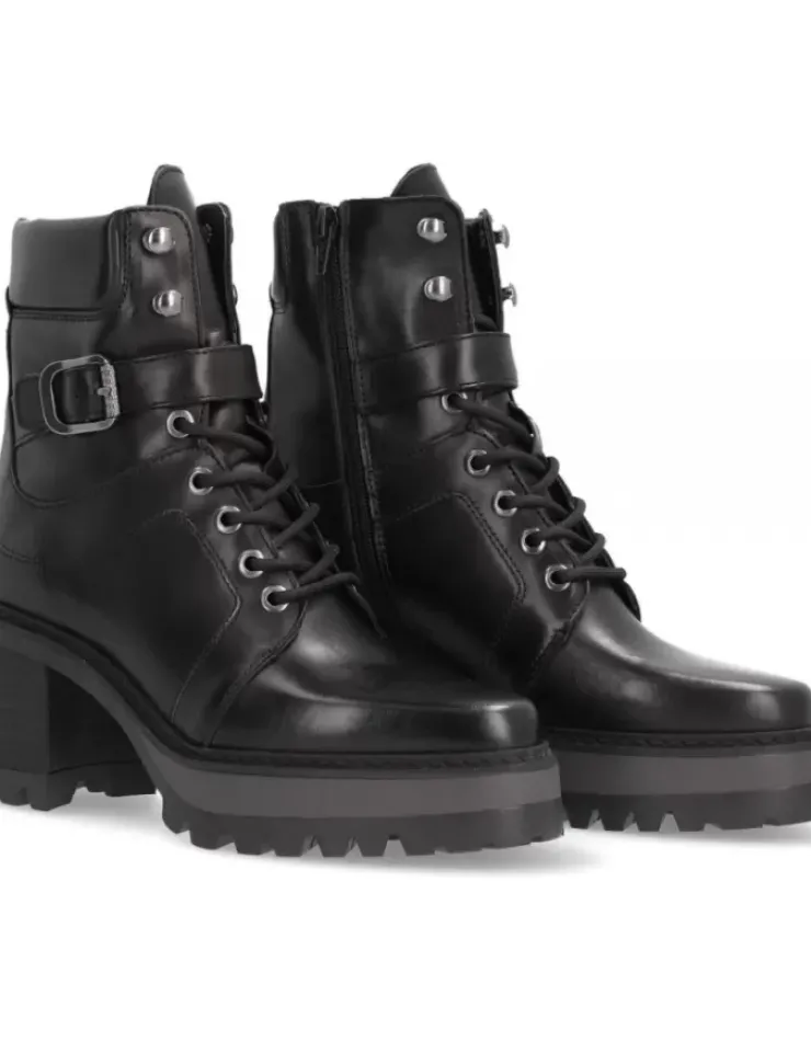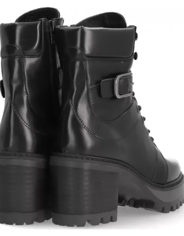 Botin Para Mujer Alpe New, Fabricado En Piel (Becerro) De Color Negro Con Tacon De 7 Cm, Suela Antideslizante Y Puntera Redonda, Con Cierre Mediante Cremallera Baja.