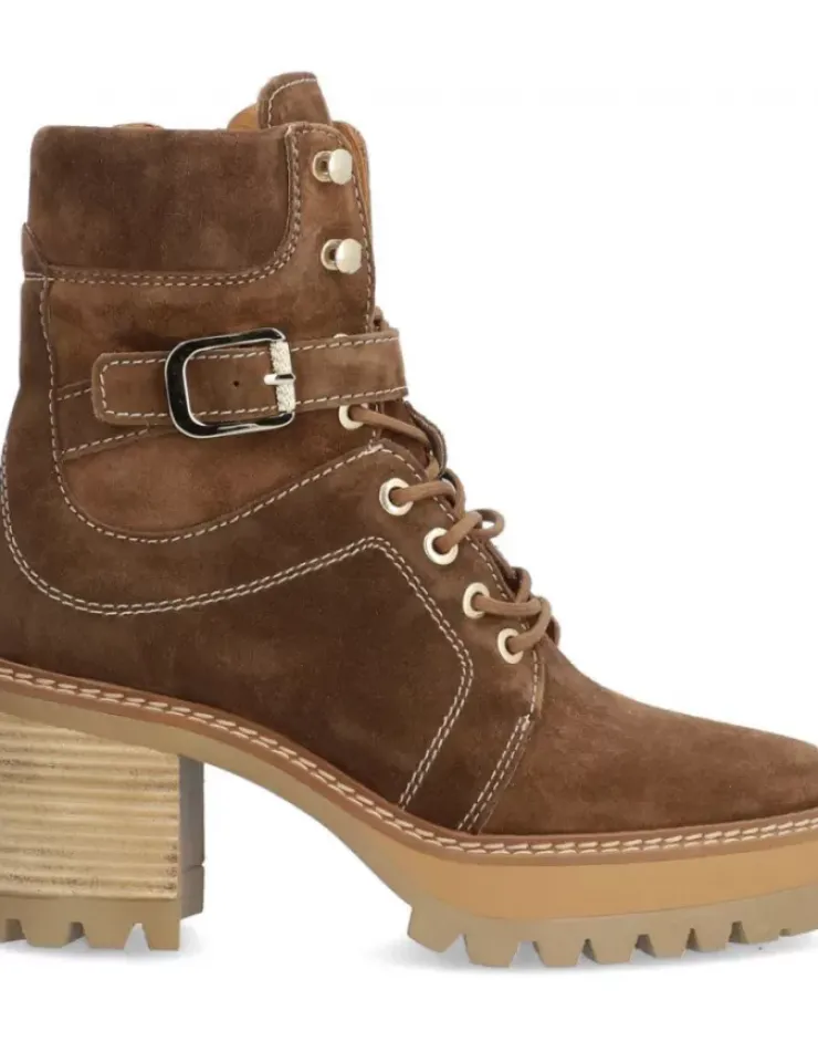 Botin Para Mujer Alpe New Amelie, Fabricado En Piel (Baby Silk) De Color Sandalo Con Tacon De 7 Cm, Suela Antideslizante Y Puntera Redonda, Con Cierre Mediante Cremallera Y Cana Baja.