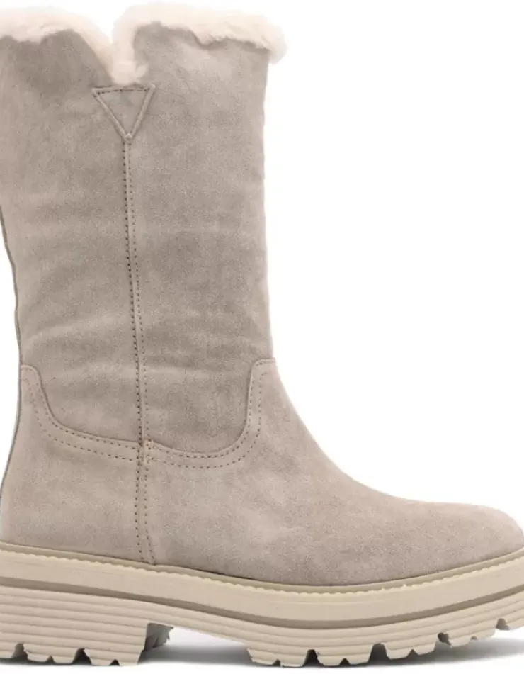 Bota Para Mujer Alpe Oslo, Fabricada En Piel (Baby Silk) De Color Polar Con Tacon De 4,5 Cm, Suela Antideslizante Y Puntera Redonda, Sin Cierre Y Cana Alta.