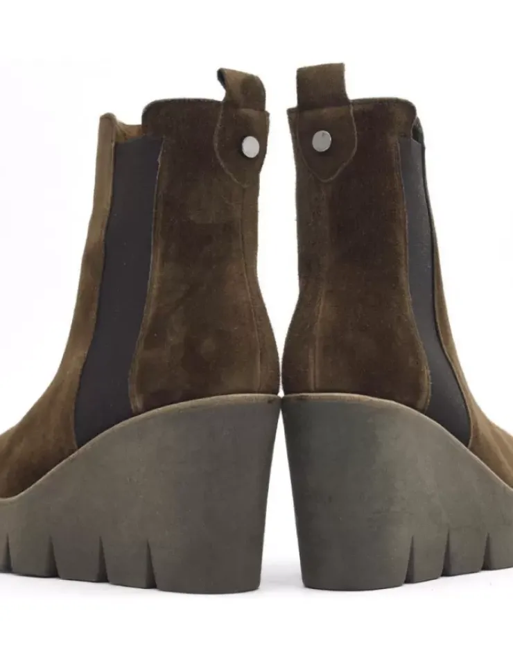 Botin Para Mujer Alpe Sasha, Fabricado En Piel (Baby Silk) De Color Arabica Con Cuna De 9 Cm, Suela Antideslizante Y Puntera Redonda, Sin Cierre Y Cana Baja.