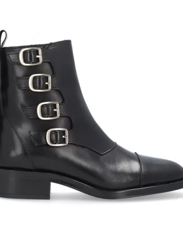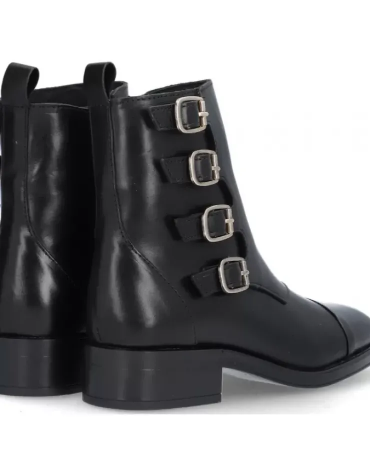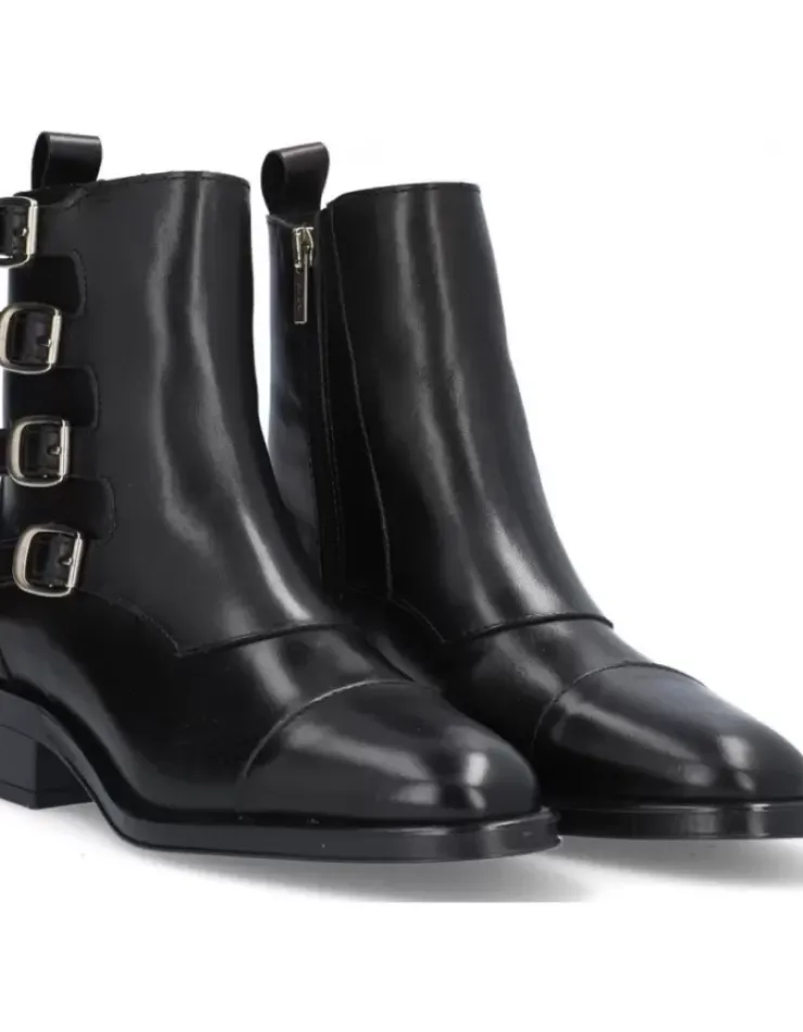 Botin Para Mujer Alpe Couture, Fabricado En Piel (Becerro) De Color Negro Con Tacon De 3,5 Cm, Suela Antideslizante Y Puntera Redonda, Con Cierre Mediante Cremallera Y Cana Baja.