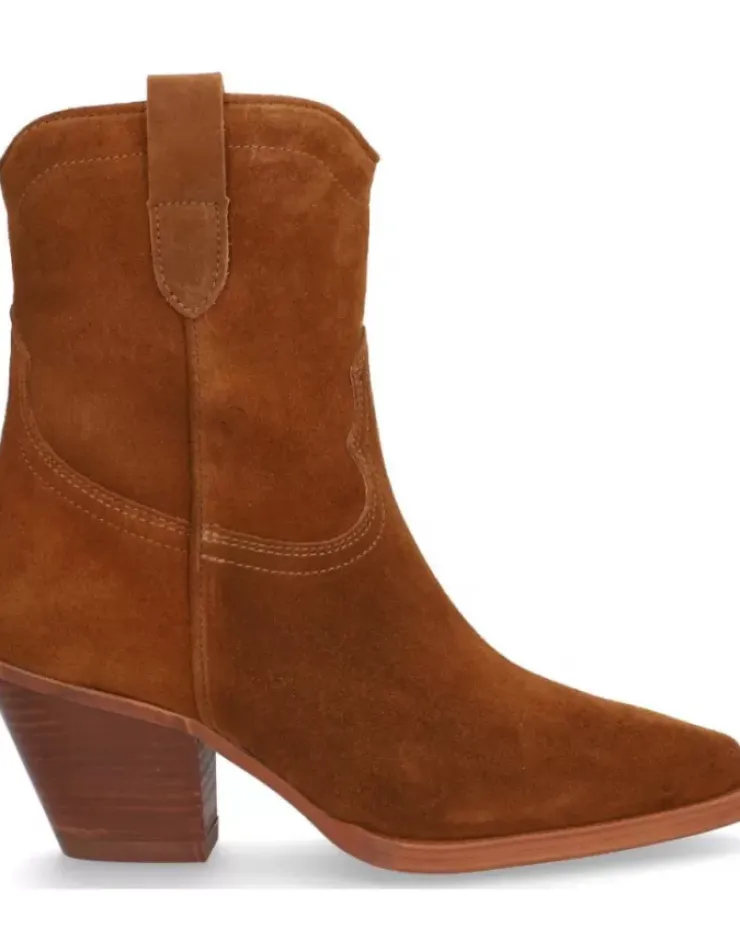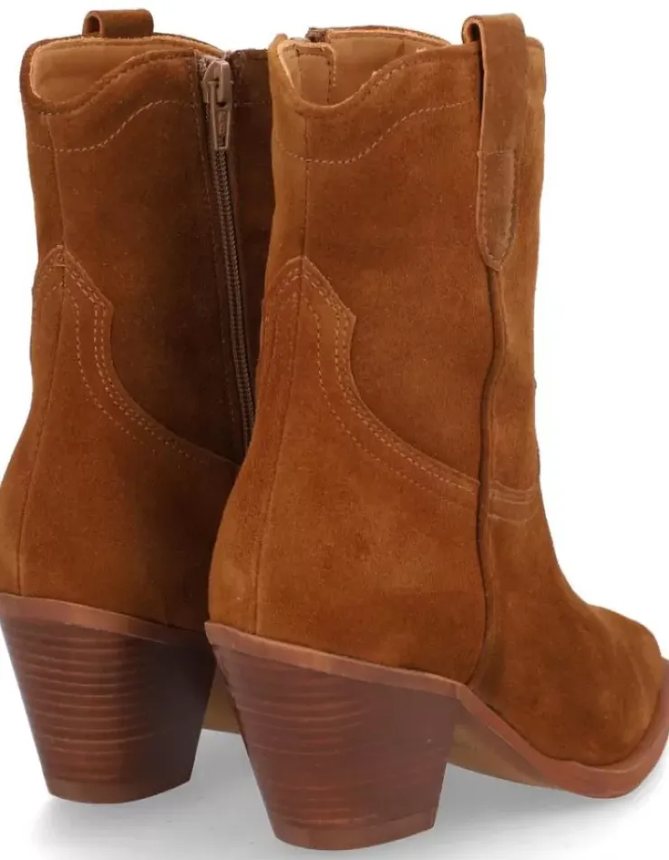 Botin Para Mujer Alpe Givet, Fabricado En Piel (Baby Silk) De Color Cuero Con Tacon De 5,5 Cm, Suela Antideslizante Y Puntera Afilada, Con Cierre Mediante Cremallera Y Cana Baja.