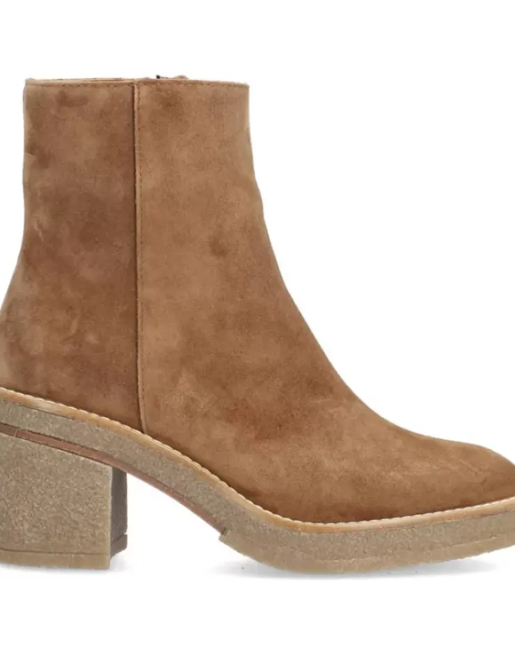 Botin Para Mujer Alpe Janis, Fabricado En Piel (Baby Silk) De Color Cuero Con Tacon De 7,5 Cm, Suela Antideslizante Y Puntera Redonda, Con Cierre Mediante Cremallera Y Cana Baja.