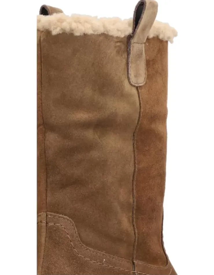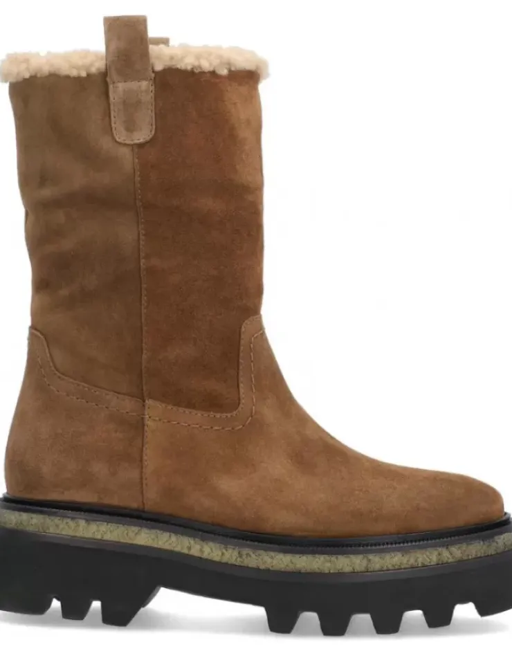 Bota Para Mujer Alpe Milano, Fabricada En Piel (Baby Silk) De Color Sandalo Con Tacon De 5 Cm, Suela Antideslizante Y Puntera Redonda, Sin Cierre Media.