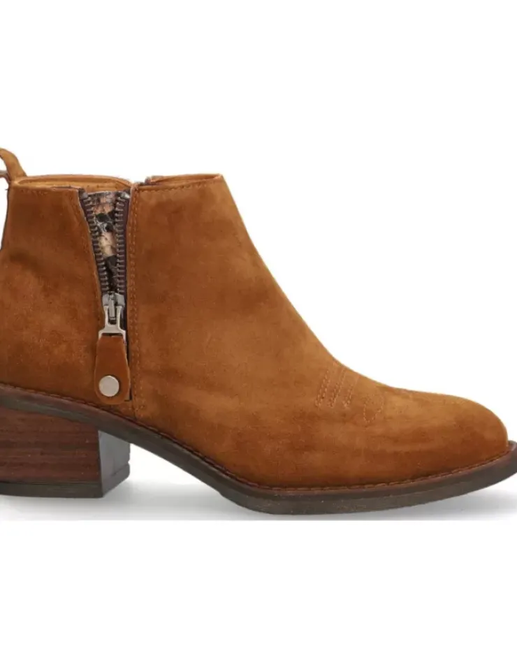 Botin Para Mujer Alpe Nelly, Fabricado En Piel (Baby Silk) De Color Cuero Con Tacon De 4,5 Cm, Suela Antideslizante Y Puntera Redonda, Con Cierre Mediante Cremallera Y Cana Baja.
