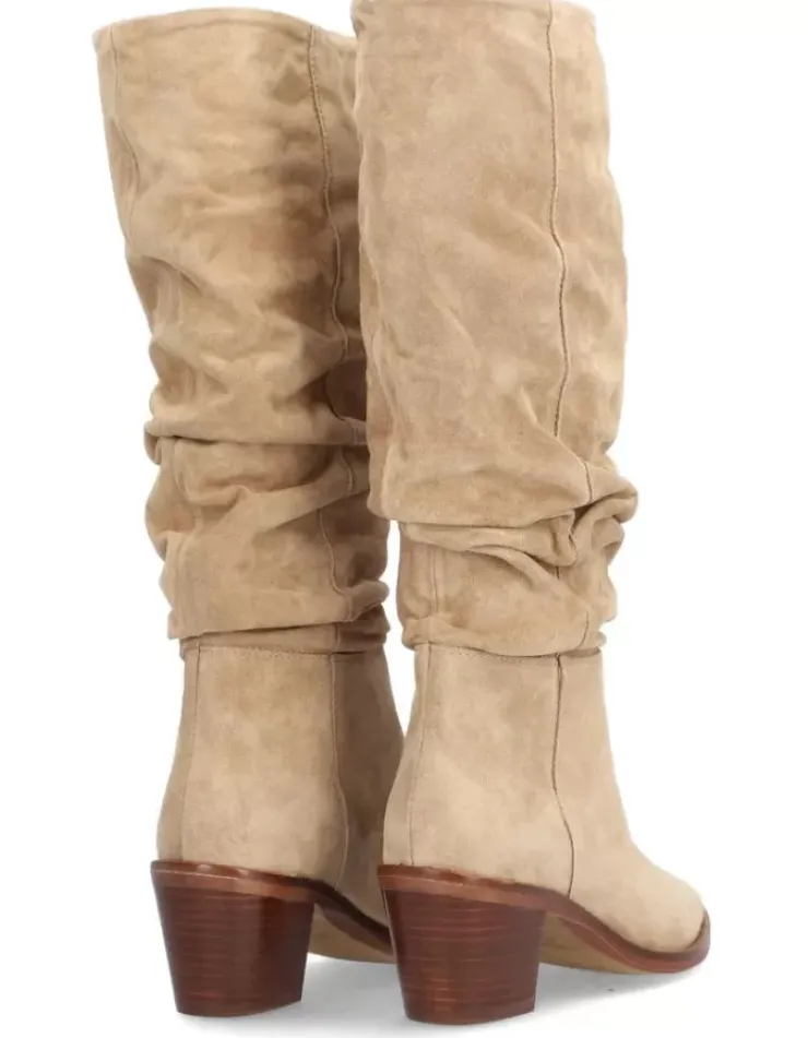 Bota Para Mujer Alpe Nevada, Fabricada En Piel (Baby Silk) De Color Noisette Con Tacon De 6 Cm, Suela Antideslizante Y Puntera Afilada, Sin Cierre Alta.