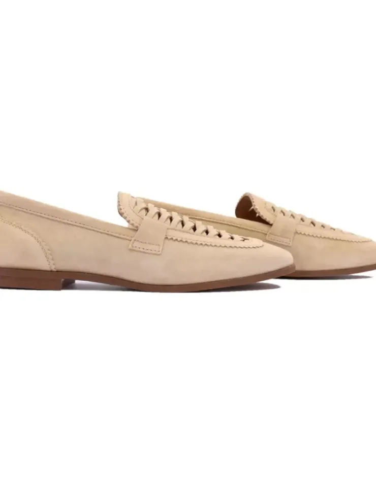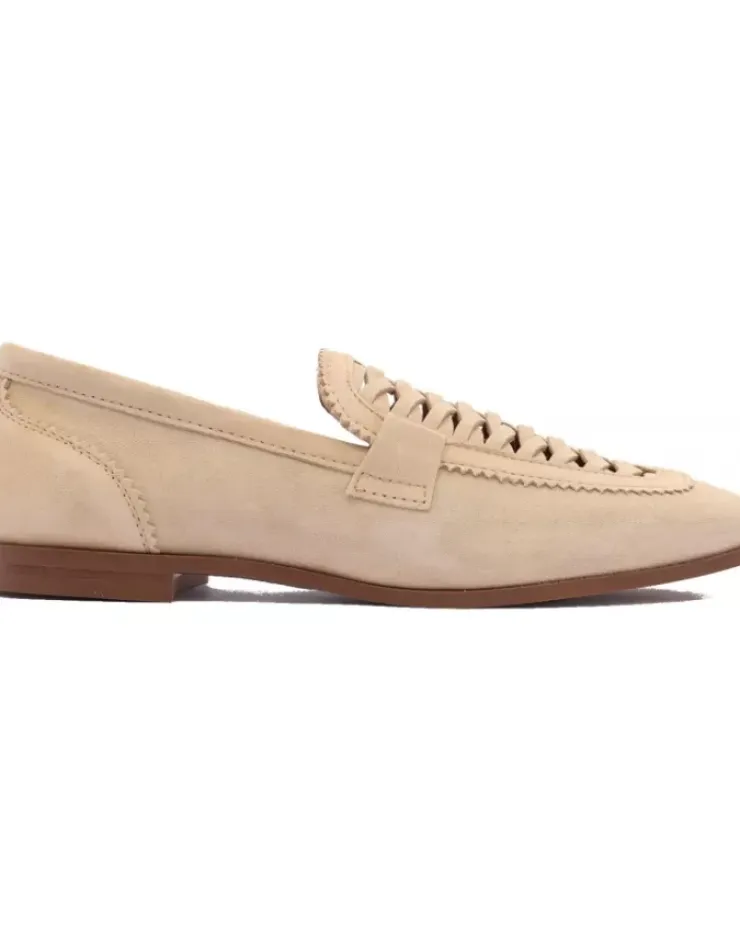 Mocasin Para Mujer Alpe New Roma, Fabricado En Piel (Baby Silk) De Color Naturale Sin Tacon, Suela Antideslizante Y Puntera Cuadrada, Sin Cierre.