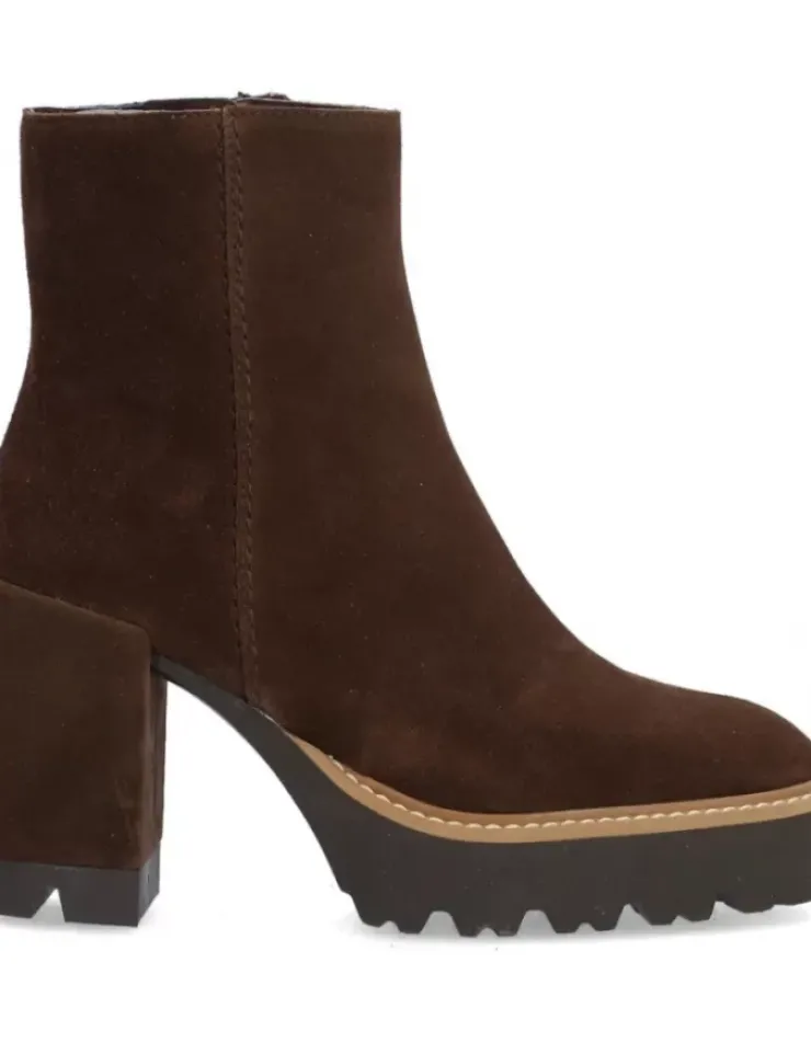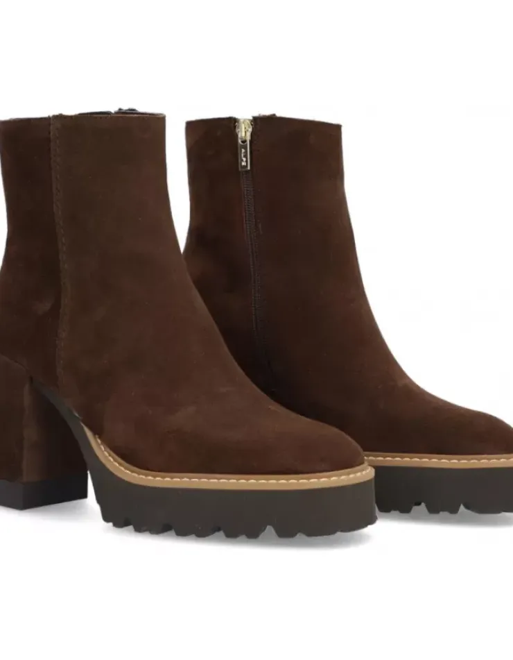 Botin Para Mujer Alpe Colette, Fabricado En Piel (Baby Silk) De Color Arabica Con Tacon De 7 Cm, Suela Antideslizante Y Puntera Redonda, Con Cierre Mediante Cremallera Baja.