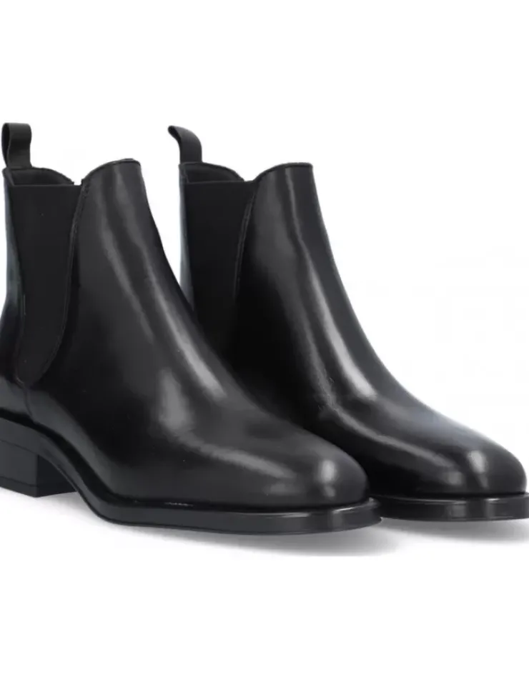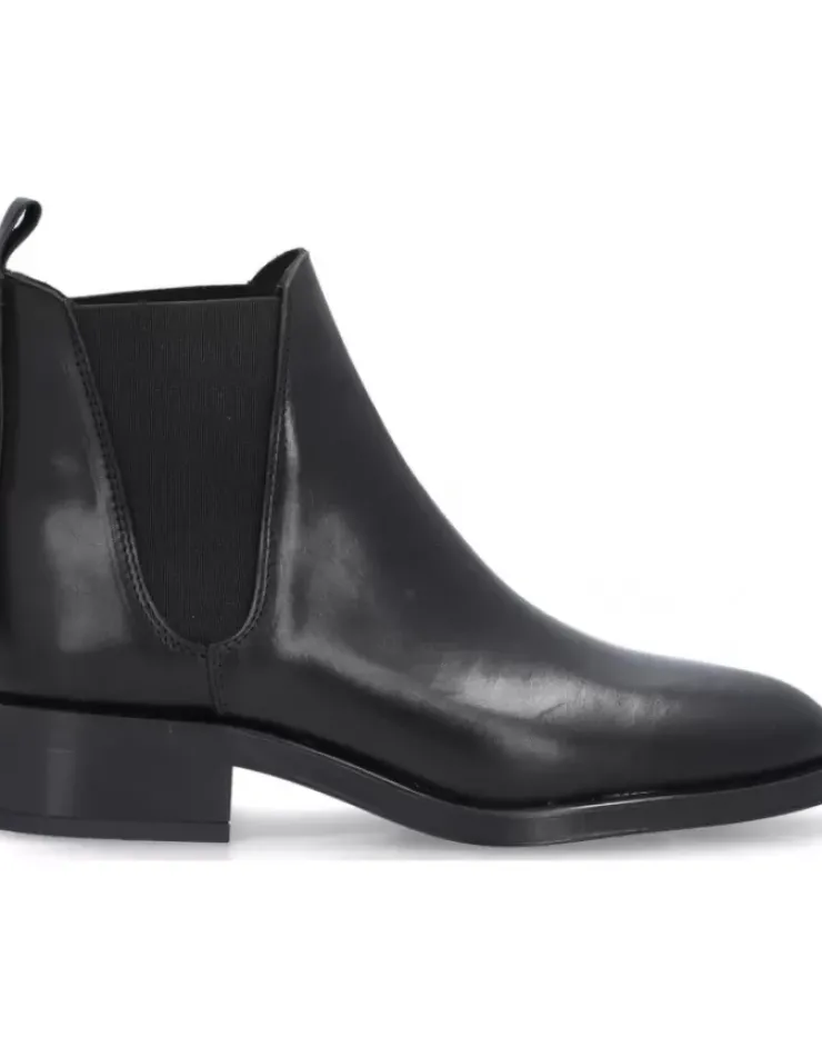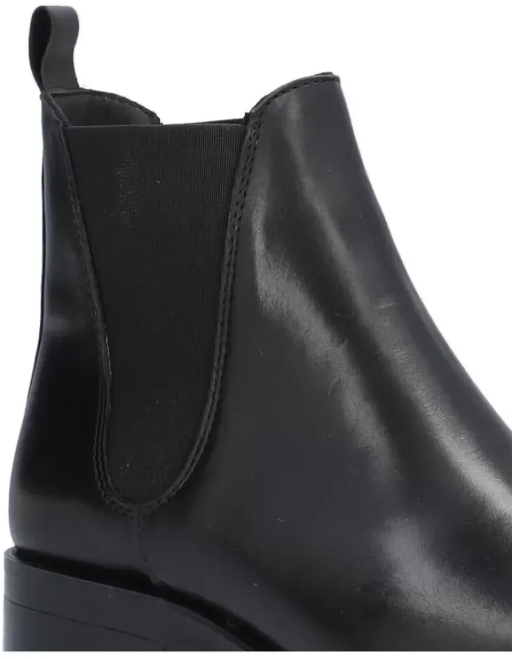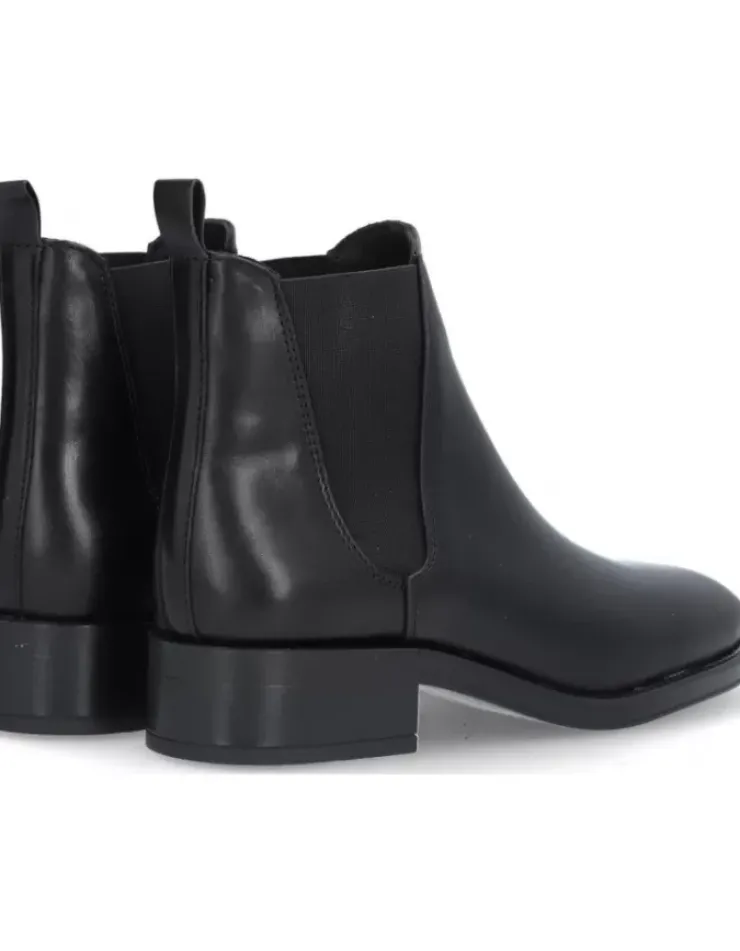 Botin Para Mujer Alpe Couture, Fabricado En Piel (Becerro) De Color Negro Con Tacon De 3,5 Cm, Suela Antideslizante Y Puntera Redonda, Sin Cierre Y Cana Baja.