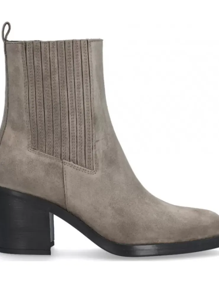 Botin Para Mujer Alpe Leyna, Fabricado En Piel (Baby Silk) De Color Taiga Con Tacon De 7 Cm, Suela Antideslizante Y Puntera Redonda, Con Cierre Mediante Cremallera Y Cana Baja.