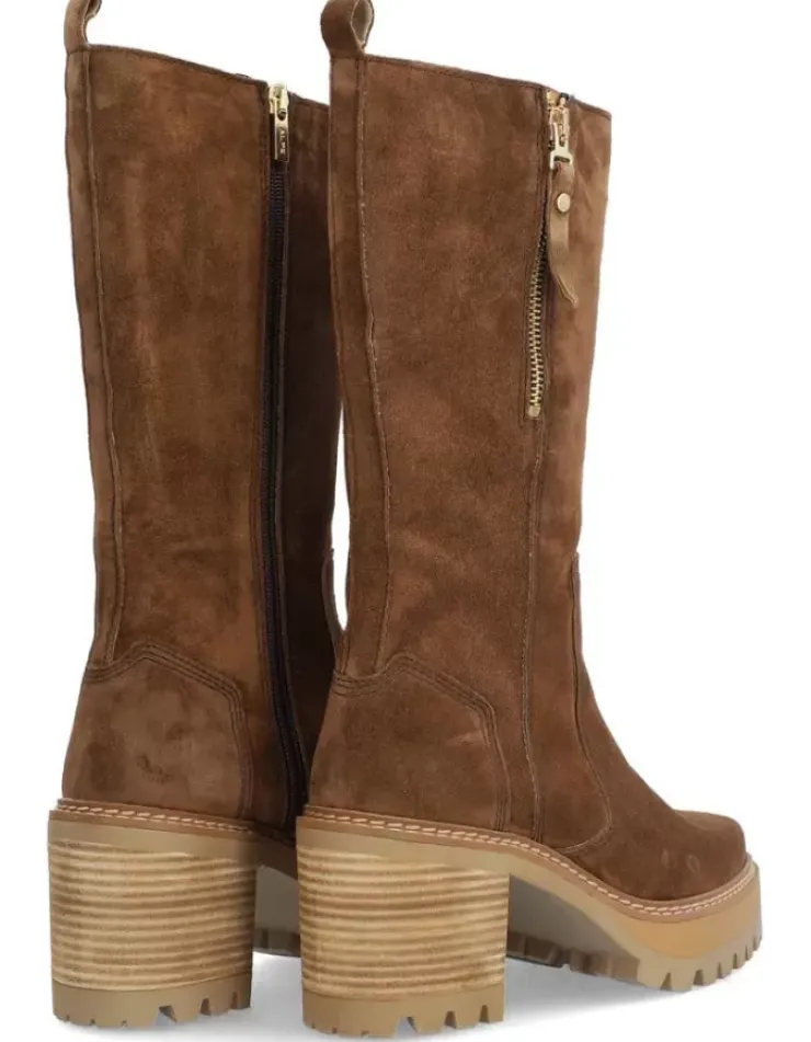 Bota Para Mujer Alpe New Amelie, Fabricada En Piel (Baby Silk) De Color Sandalo Con Tacon De 7 Cm, Suela Antideslizante Y Puntera Redonda, Con Cierre Mediante Cremallera Y Cana Media.