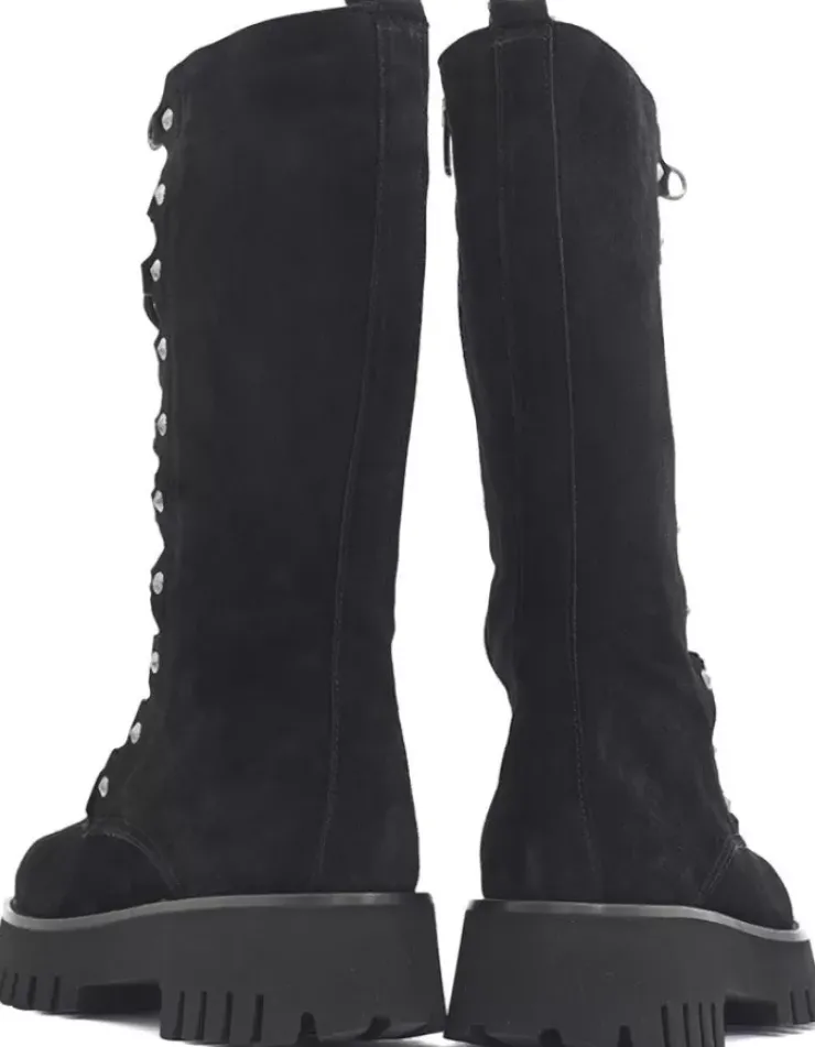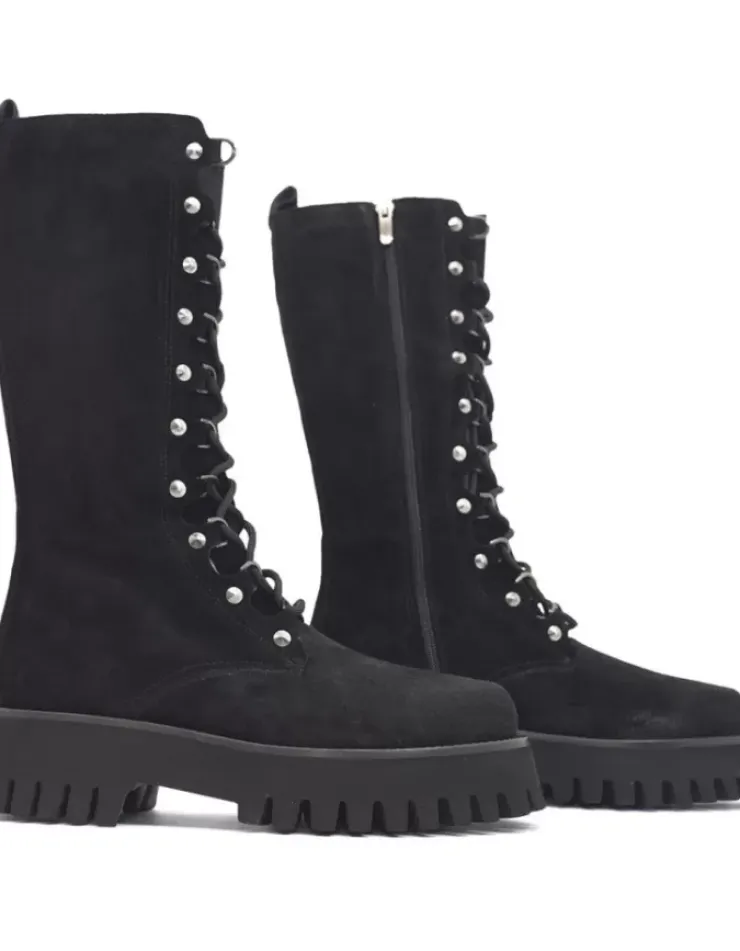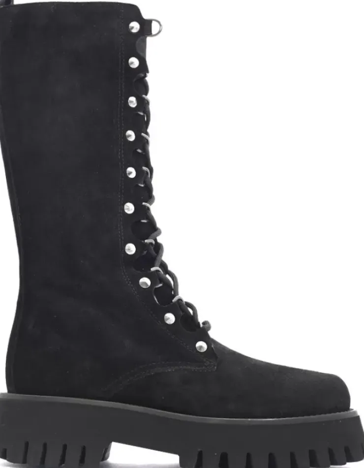 Bota Para Mujer Alpe Tokio, Fabricada En Piel (Baby Silk) De Color Negro Con Plataforma De 5 Cm, Suela Antideslizante Y Puntera Redonda, Con Cierre Mediante Cremallera Alta.