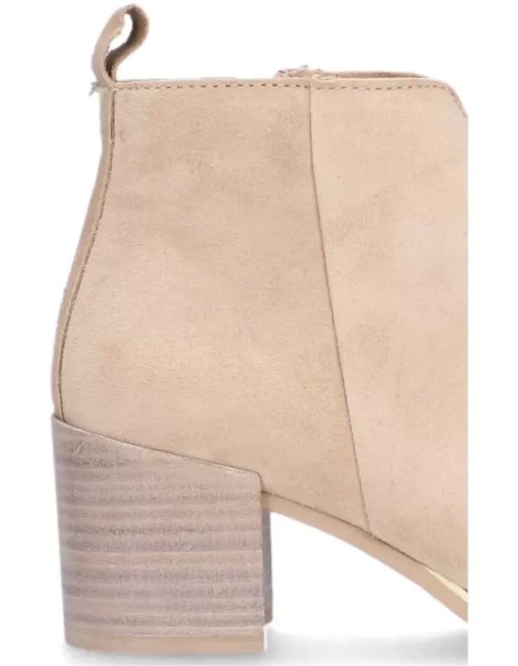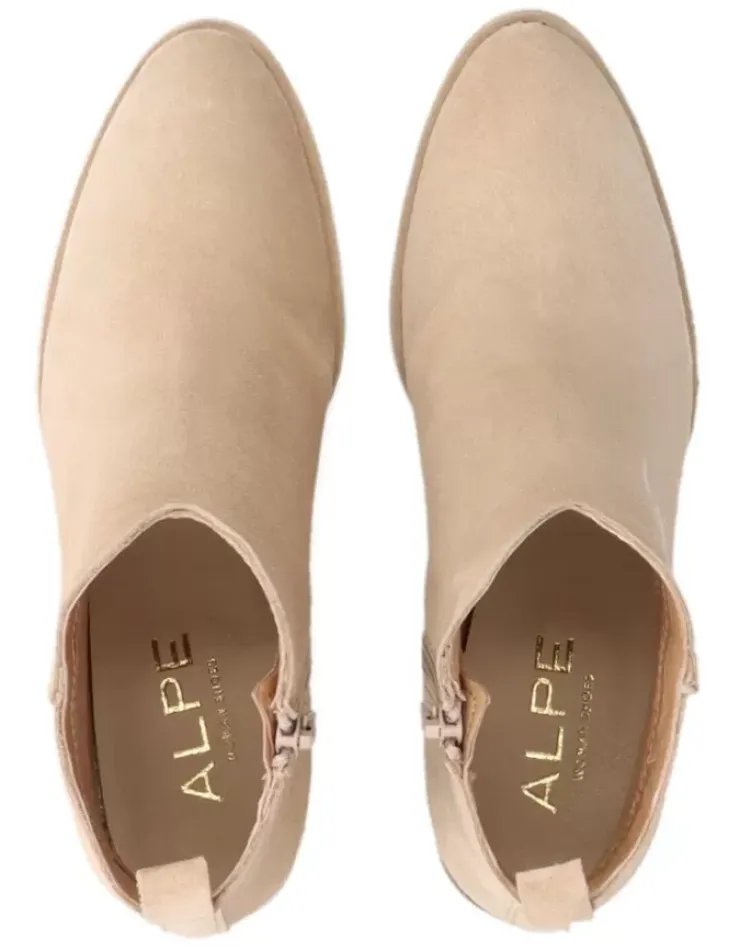 Botin Para Mujer Alpe Alba, Fabricado En Piel (Baby Silk) De Color Arena Con Tacon De 6 Cm, Suela Antideslizante Y Puntera Afilada, Con Cierre Mediante Cremallera Y Cana Baja.