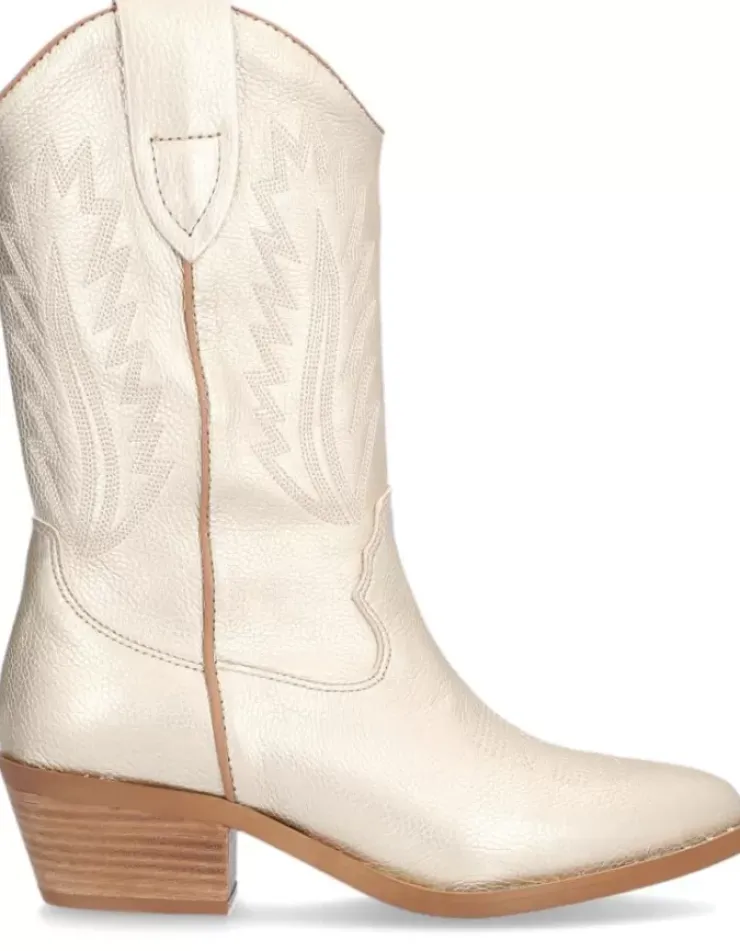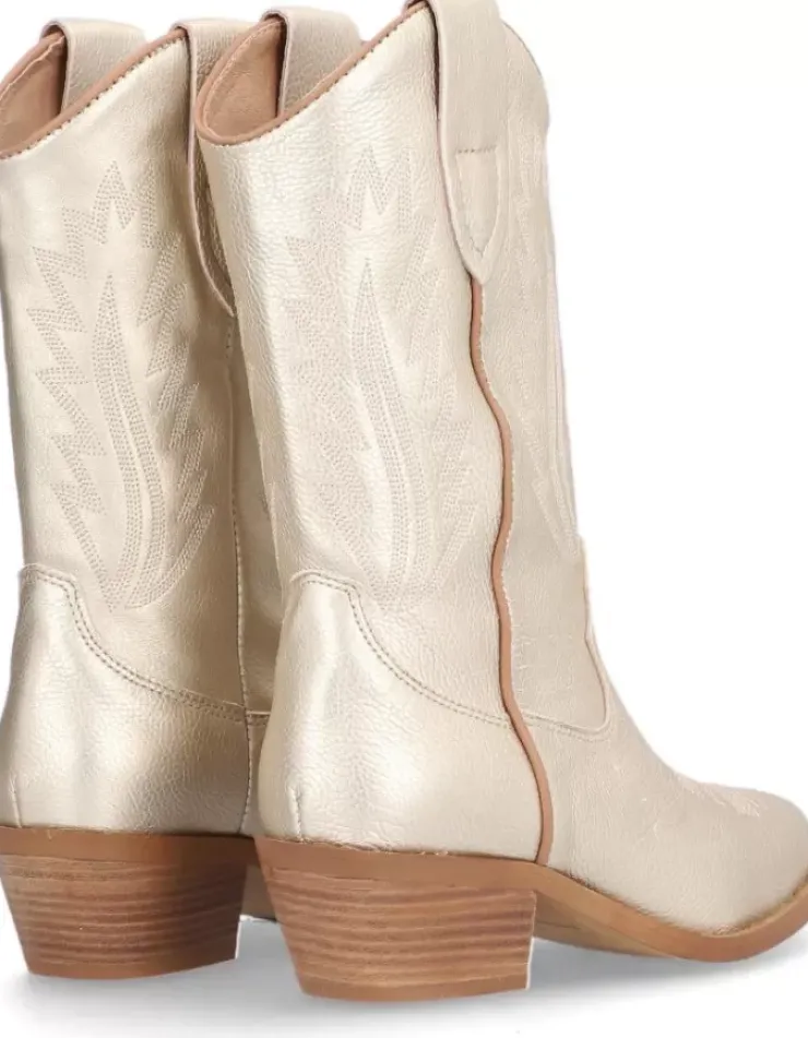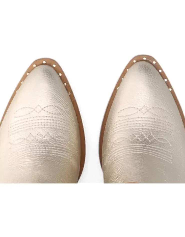 Bota Para Mujer Alpe Claire, Fabricada En Piel (Gibson) De Color Platino Con Tacon De 4 Cm, Suela Antideslizante Y Puntera Afilada, Sin Cierre Y Cana Media.