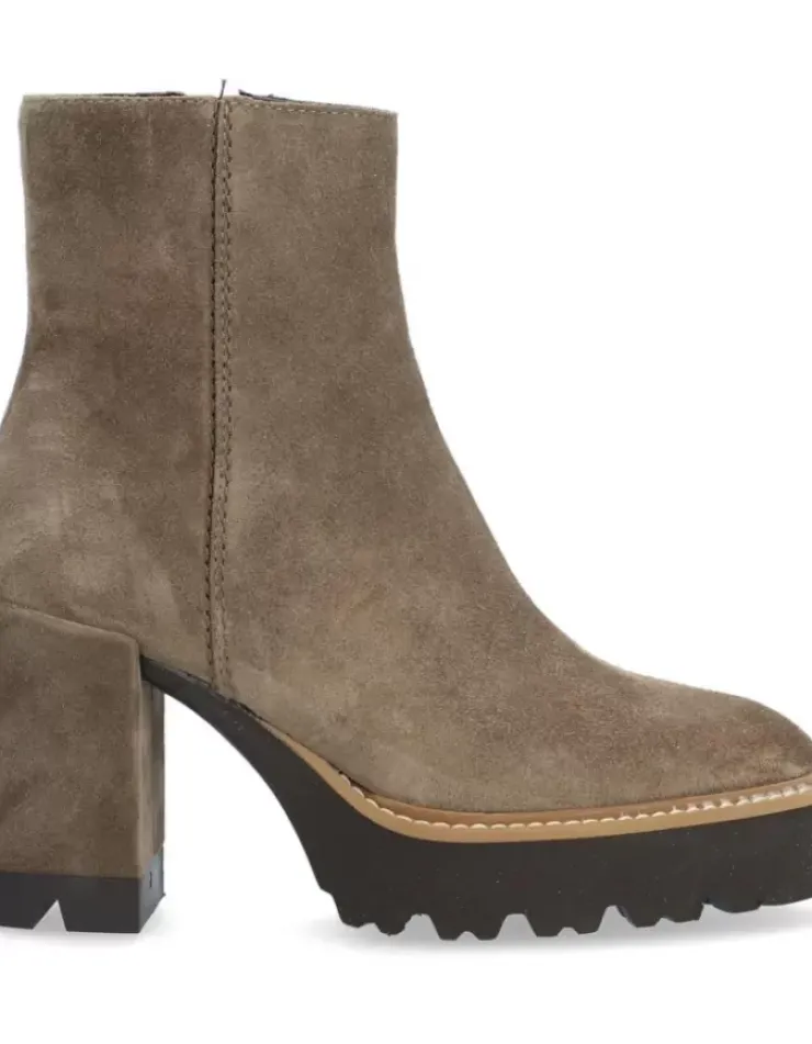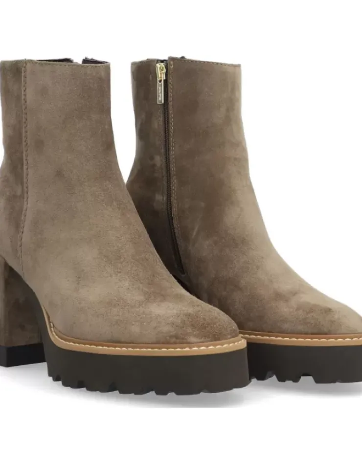 Botin Para Mujer Alpe Colette, Fabricado En Piel (Baby Silk) De Color Sander Con Tacon De 7 Cm, Suela Antideslizante Y Puntera Redonda, Con Cierre Mediante Cremallera Baja.