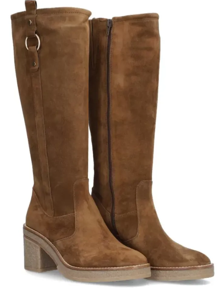Bota Para Mujer Alpe Janis, Fabricada En Piel (Baby Silk) De Color Sandalo Con Tacon De 7,5 Cm, Suela Antideslizante Y Puntera Redonda, Con Cierre Mediante Cremallera Alta.