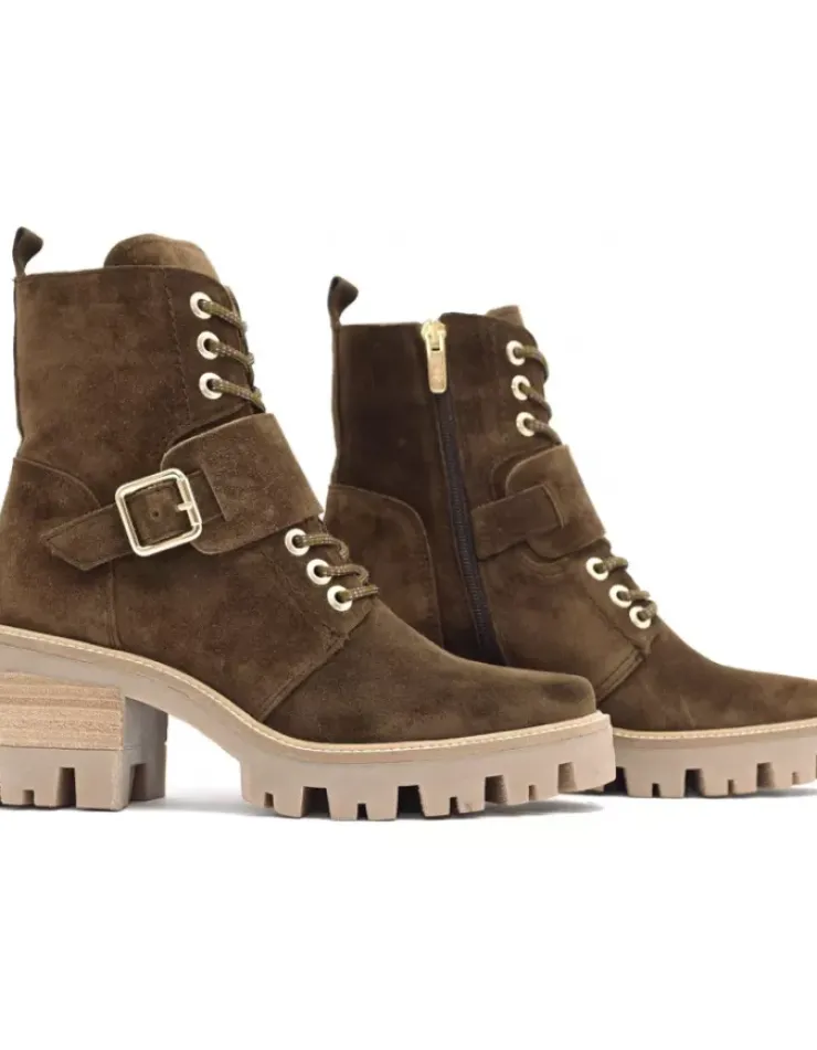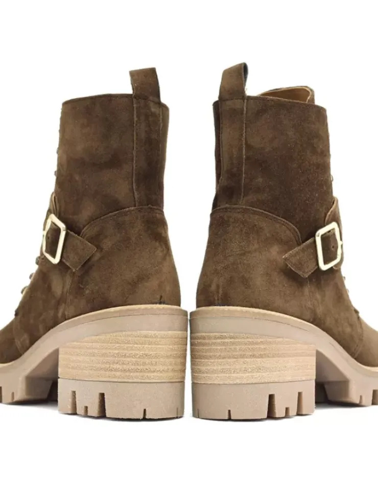 Botin Para Mujer Alpe Amelie, Fabricado En Piel (Baby Silk) De Color Arabica Con Tacon De 6 Cm, Suela Antideslizante Y Puntera Redonda, Con Cierre Mediante Cremallera Y Cana Baja.