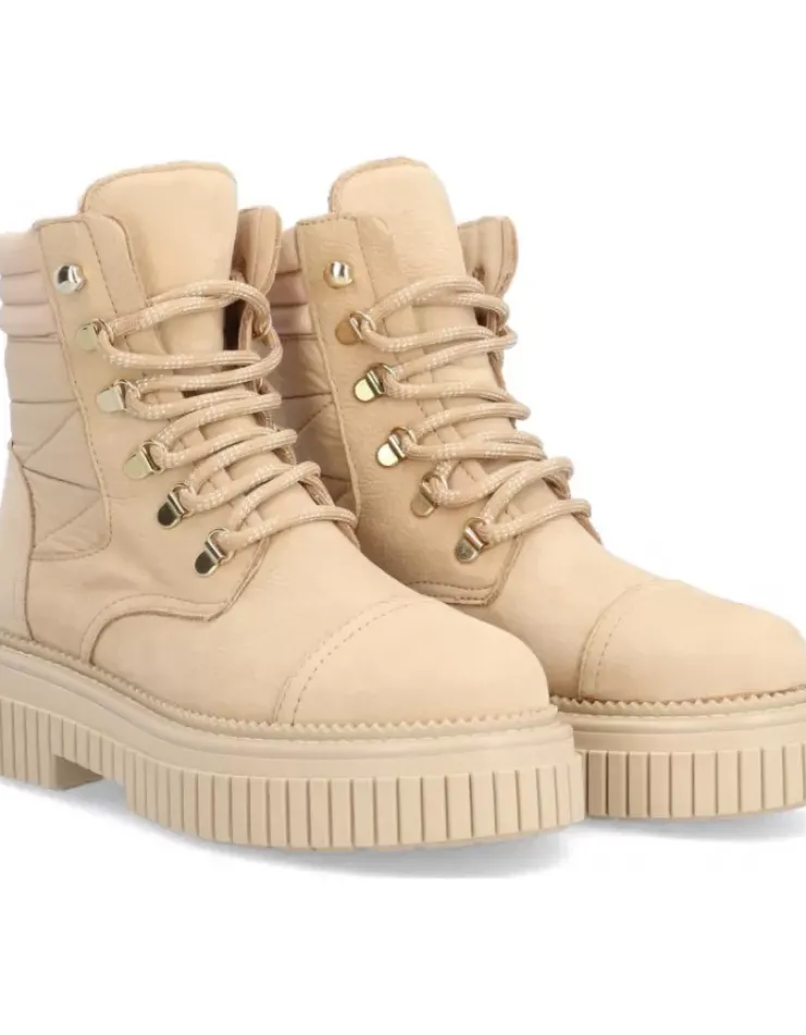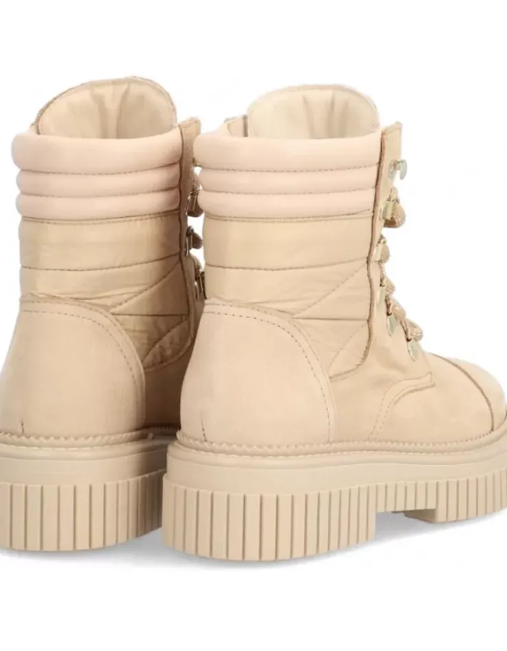 Bota Para Mujer Alpe Bimba, Fabricada En Piel (Nobuck) De Color Canela Con Plataforma De 5 Cm, Suela Antideslizante Y Puntera Redonda, Con Cierre Mediante Cordon Y Cana Baja.