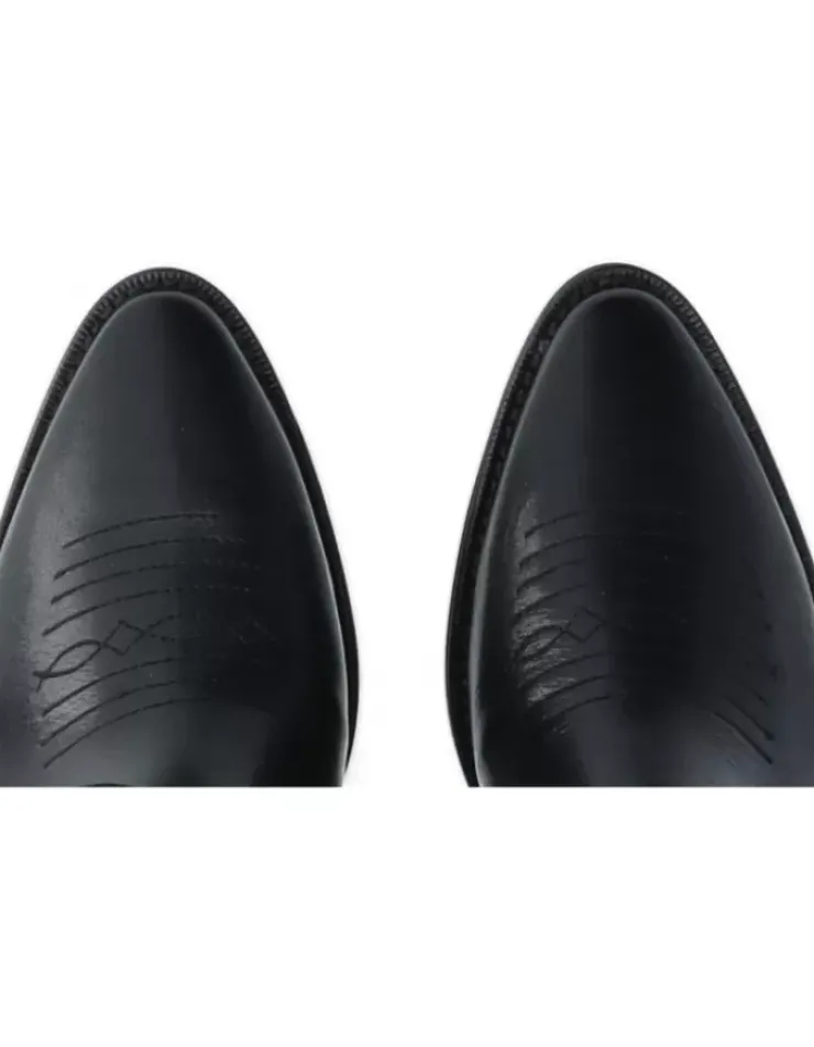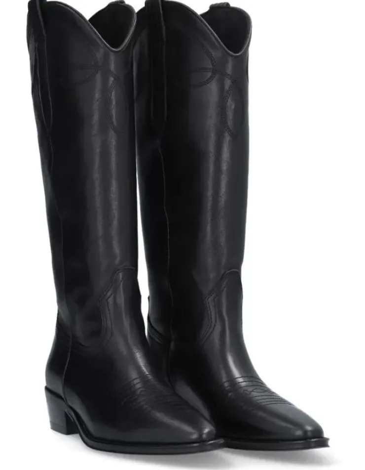 Bota Para Mujer Alpe Cecile, Fabricada En Piel (Sagar) De Color Negro Con Tacon De 4 Cm, Suela Antideslizante Y Puntera Afilada, Sin Cierre Y Cana Alta.