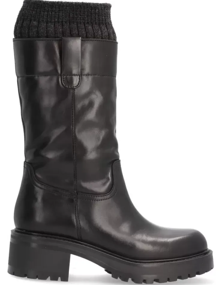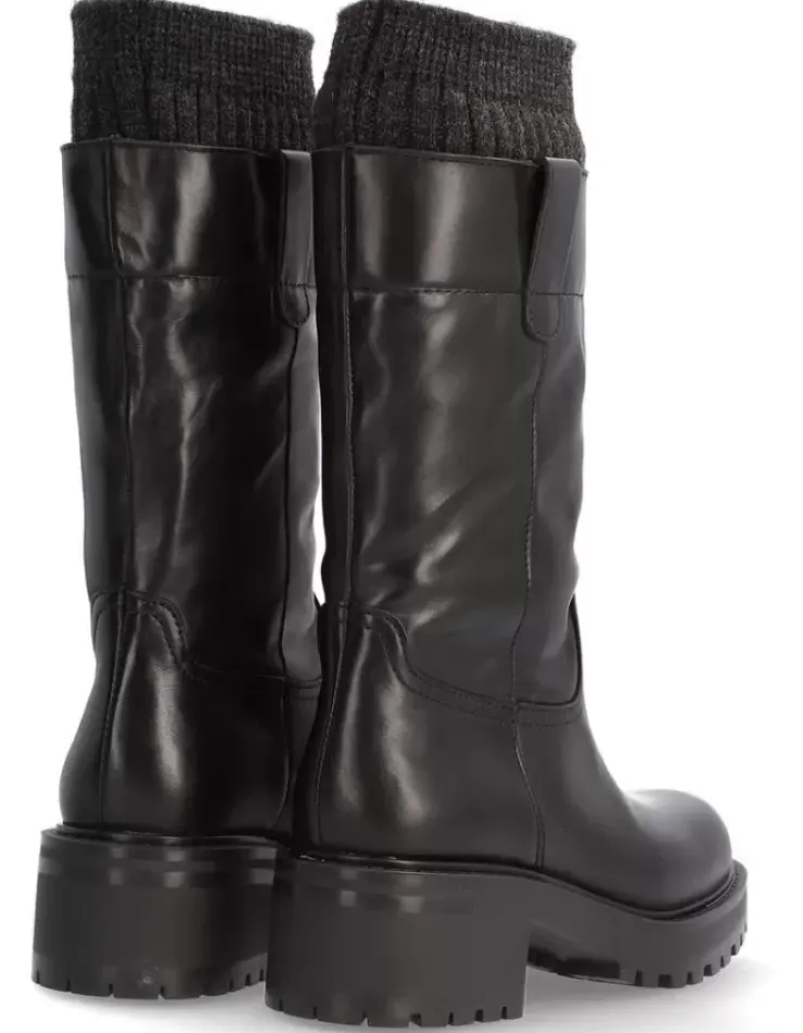 Bota Para Mujer Alpe Cool, Fabricada En Piel (Becerro) De Color Negro Con Tacon De 5 Cm, Suela Antideslizante Y Puntera Redonda, Sin Cierre Y Cana Media.