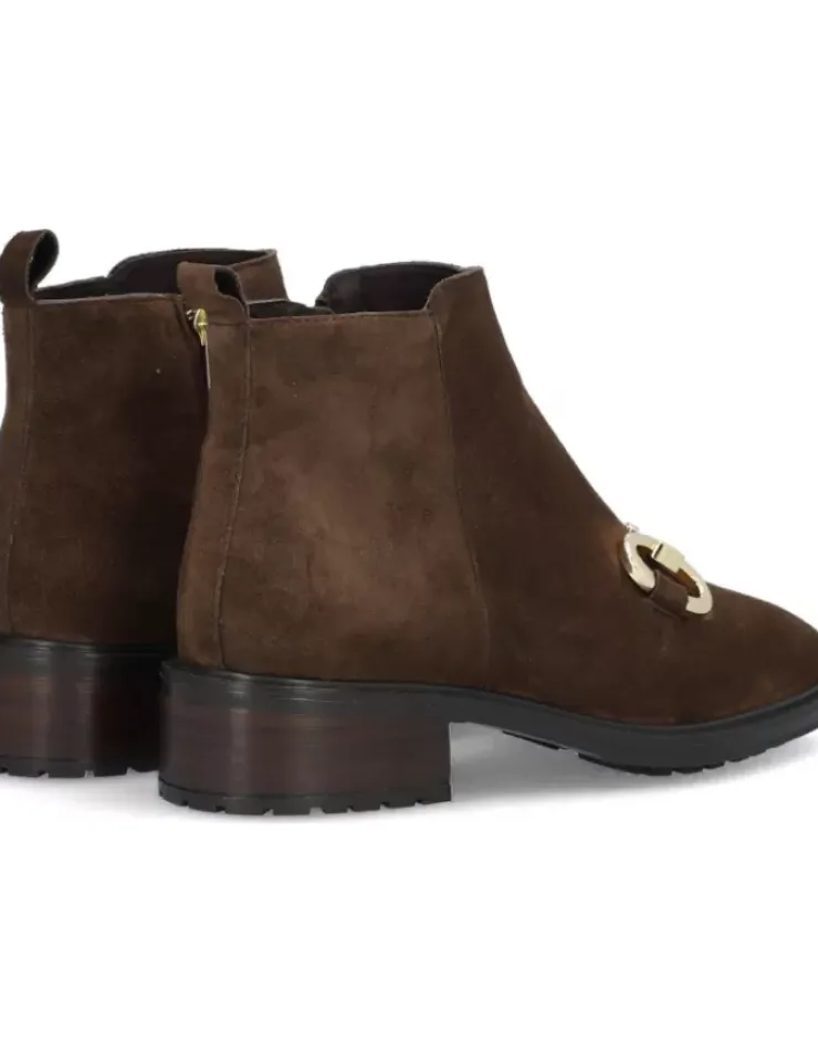 Botin Para Mujer Alpe Idaho, Fabricado En Piel (Baby Silk) De Color Arabica Con Tacon De 3,5 Cm, Suela Antideslizante Y Puntera Redonda, Con Cierre Mediante Cremallera Y Cana Baja.