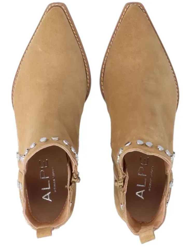 Botin Para Mujer Alpe Trendy, Fabricado En Piel (Baby Silk) De Color Alce Con Tacon De 4,5 Cm, Suela Antideslizante Y Puntera Afilada, Con Cierre Mediante Cremallera Y Cana Baja.