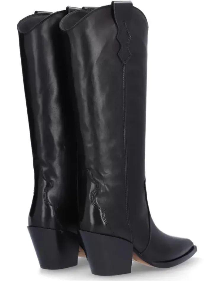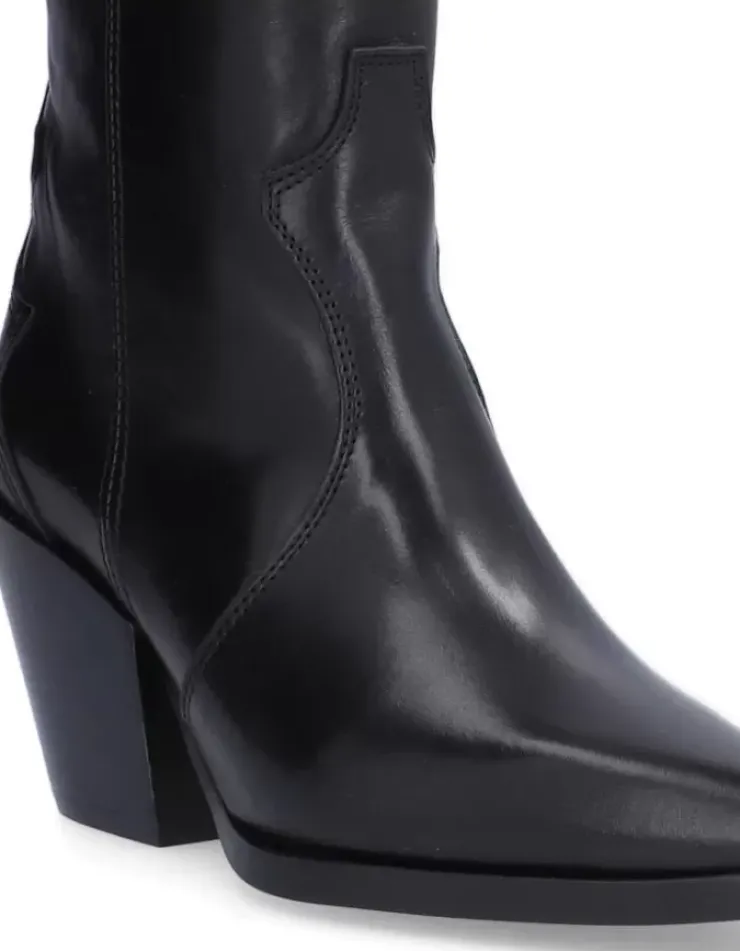 Bota Para Mujer Alpe Vermont, Fabricada En Piel (Becerro) De Color Negro Con Tacon De 6,5 Cm, Suela Antideslizante Y Puntera Afilada, Sin Cierre Y Cana Alta.