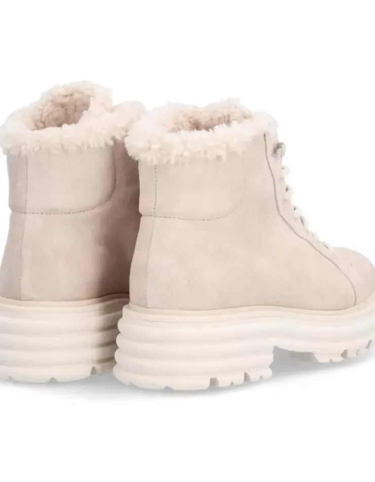 Bota Para Mujer Alpe Alabama, Fabricada En Piel (Baby Silk) De Color Calcare Con Tacon De 5 Cm, Suela Antideslizante Y Puntera Redonda, Con Cierre Mediante Cordon Y Cana Baja.