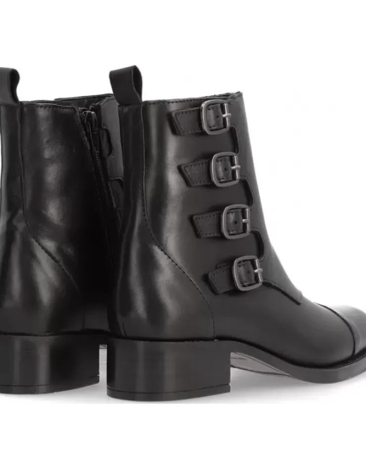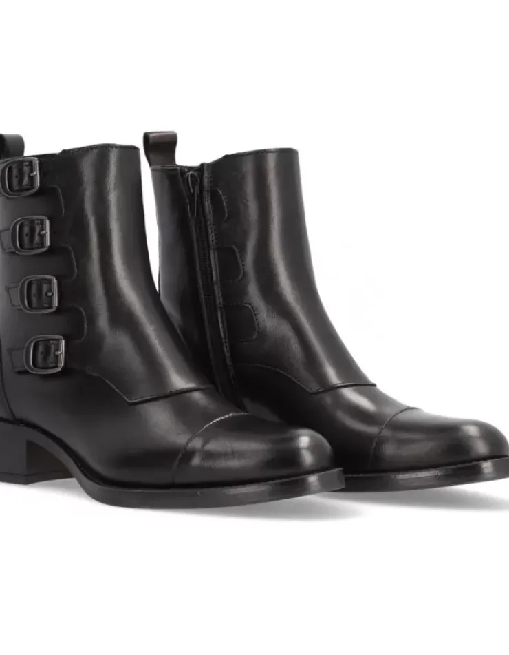 Botin Para Mujer Alpe Alain-2, Fabricado En Piel (Becerro) De Color Negro Con Tacon De 3,5 Cm, Suela Antideslizante Y Puntera Redonda, Con Cierre Mediante Cremallera Y Cana Baja.