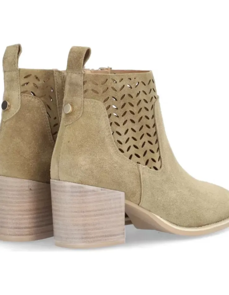 Botin Para Mujer Alpe Alba, Fabricado En Piel (Baby Silk) De Color Tabaco Con Tacon De 6 Cm, Suela Antideslizante Y Puntera Afilada, Con Cierre Mediante Cremallera Y Cana Baja.
