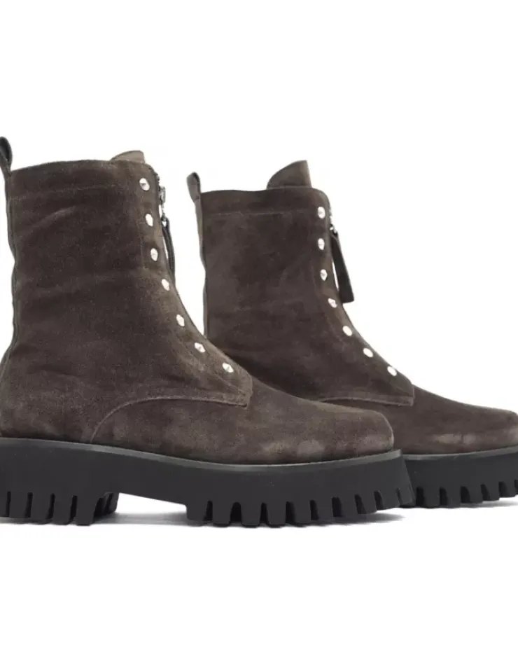 Bota Para Mujer Alpe Tokio, Fabricada En Piel (Baby Silk) De Color Iman Sin Tacon, Suela Antideslizante Y Puntera Redonda, Con Cierre Mediante Cremallera Y Cana Media.