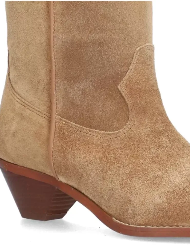 Bota Para Mujer Alpe Trendy, Fabricada En Piel (Baby Silk) De Color Cuero Con Tacon De 4,5 Cm, Suela Antideslizante Y Puntera Afilada, Sin Cierre Y Cana Media.