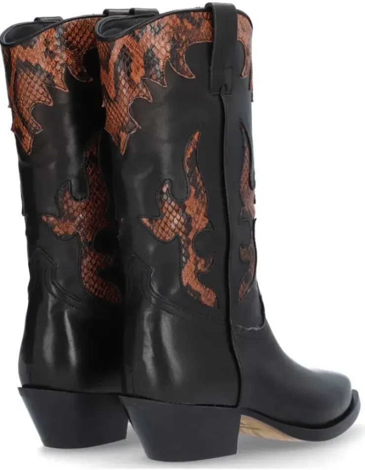 Bota Para Mujer Alpe Western, Fabricada En Piel (Piton) De Color Cuero Con Tacon De 4,5 Cm, Suela Antideslizante Y Puntera Afilada, Sin Cierre Y Cana Media.