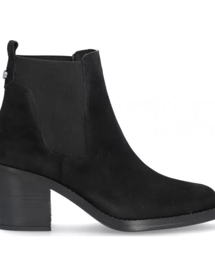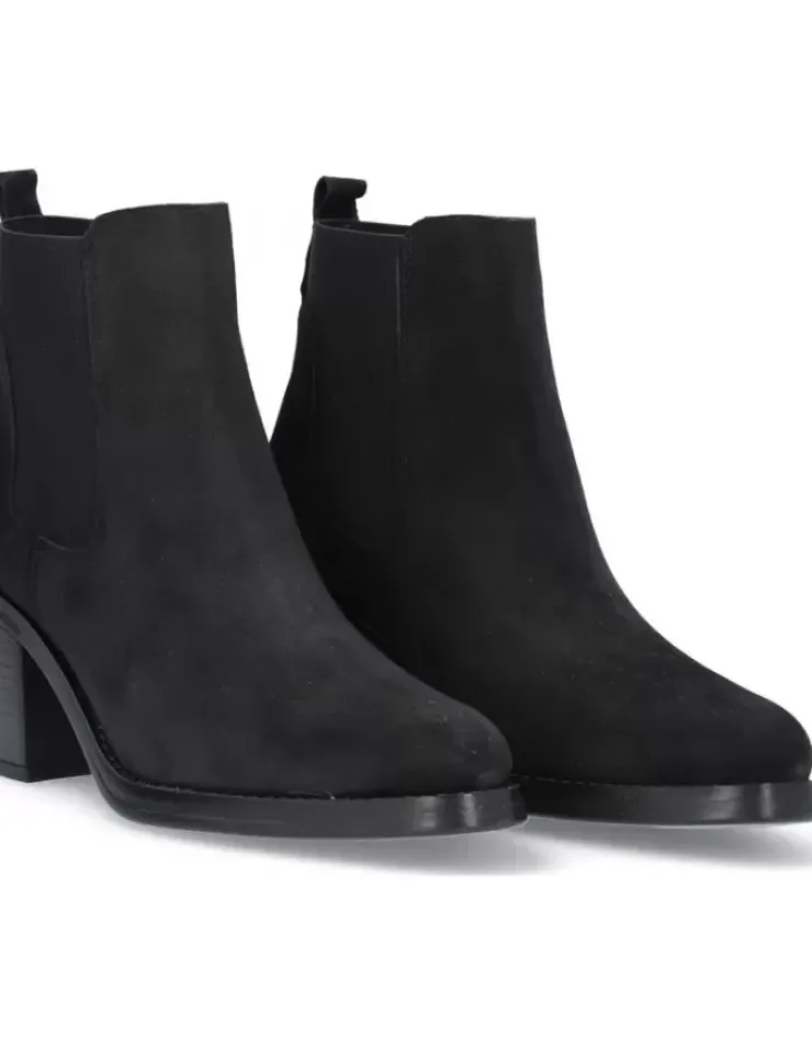 Botin Para Mujer Alpe Leyna, Fabricado En Piel (Baby Silk) De Color Negro Con Tacon De 7 Cm, Suela Antideslizante Y Puntera Redonda, Sin Cierre Y Cana Baja.