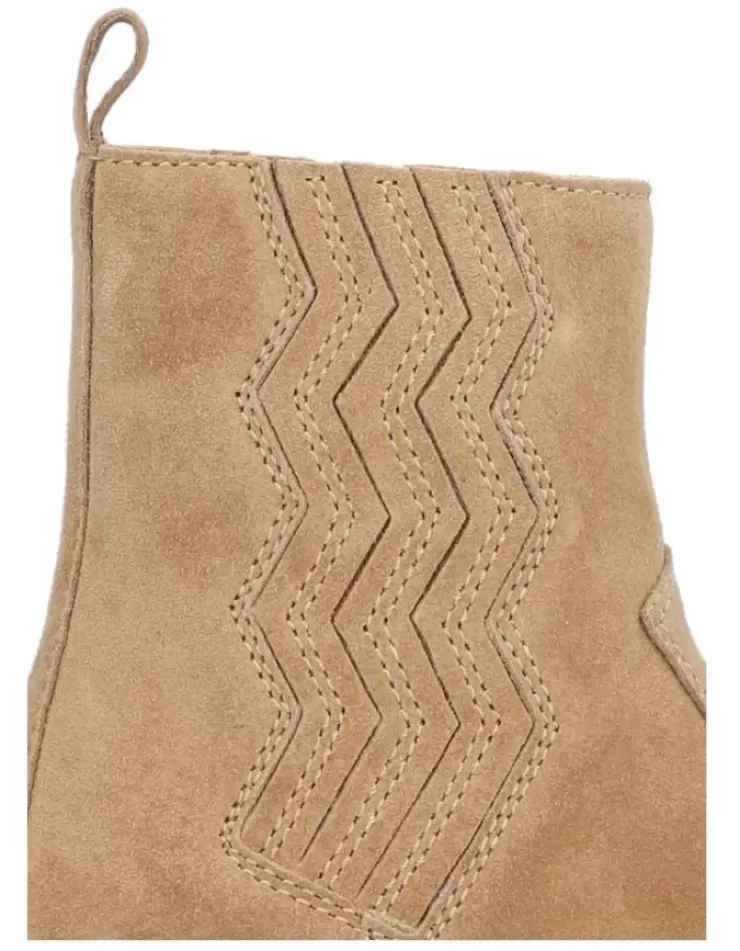 Botin Para Mujer Alpe New Amelie, Fabricado En Piel (Baby Silk) De Color Camel Con Tacon De 7 Cm, Suela Antideslizante Y Puntera Redonda, Con Cierre Mediante Cremallera Y Cana Baja.
