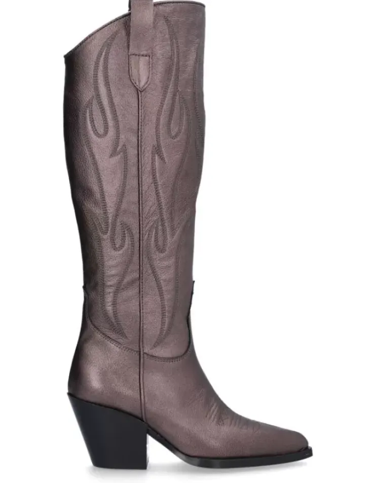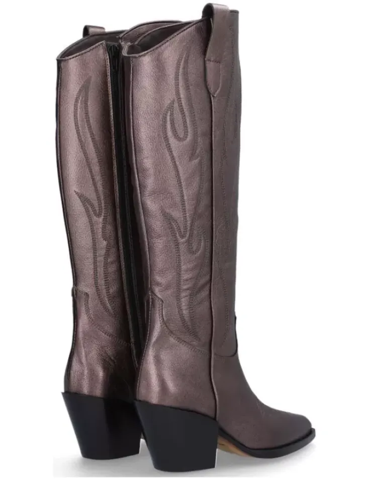 Bota Para Mujer Alpe Vermont, Fabricada En Piel (Gibson) De Color Smog Con Tacon De 6,5 Cm, Suela Antideslizante Y Puntera Afilada, Con Cierre Mediante Cremallera Y Cana Alta.
