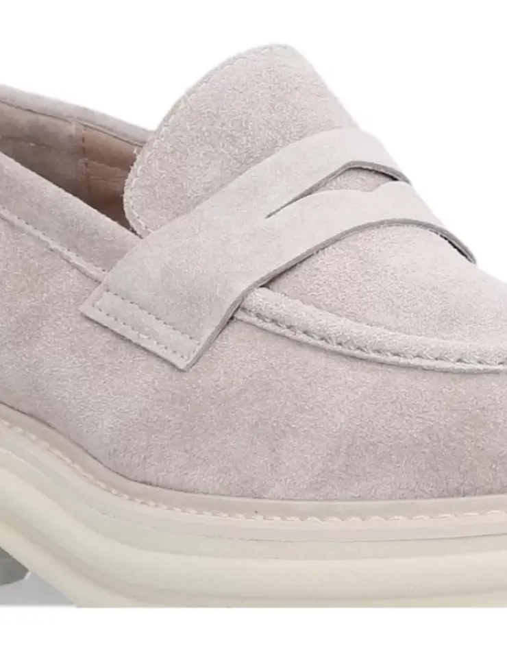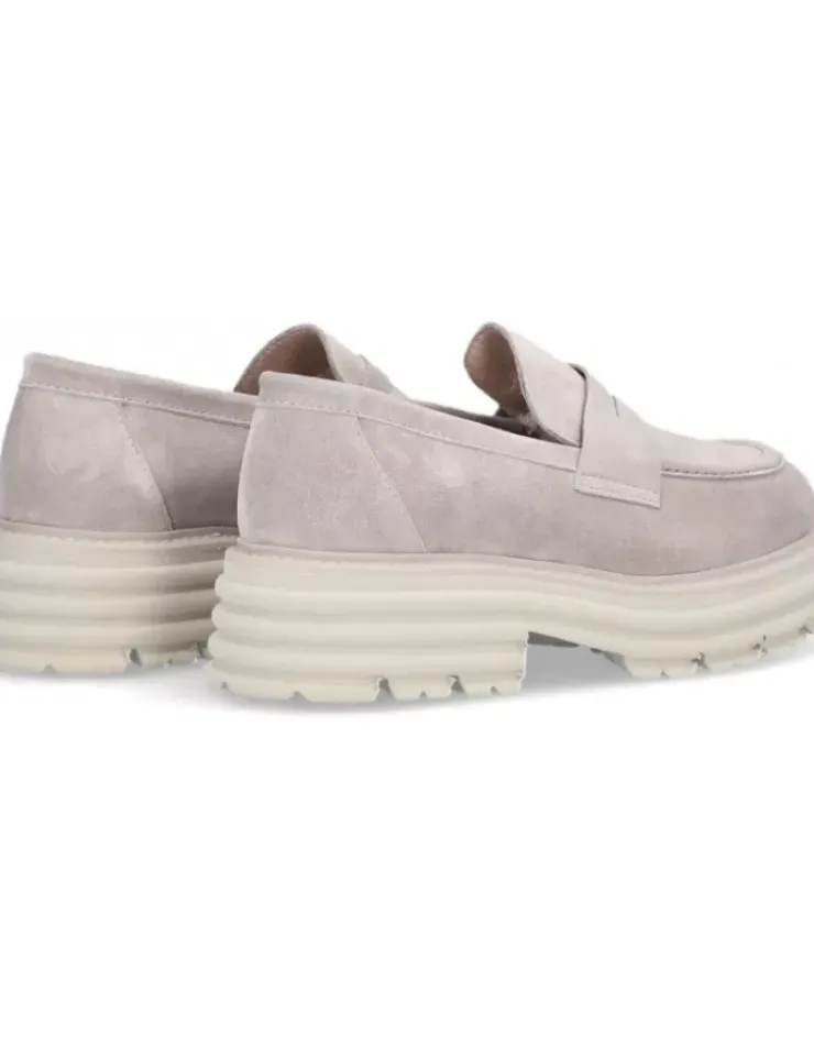 Zapato Para Mujer Alpe Alabama, Fabricado En Piel (Baby Silk) De Color Taupe Con Tacon De 5 Cm, Suela Antideslizante Y Puntera Redonda, Sin Cierre.