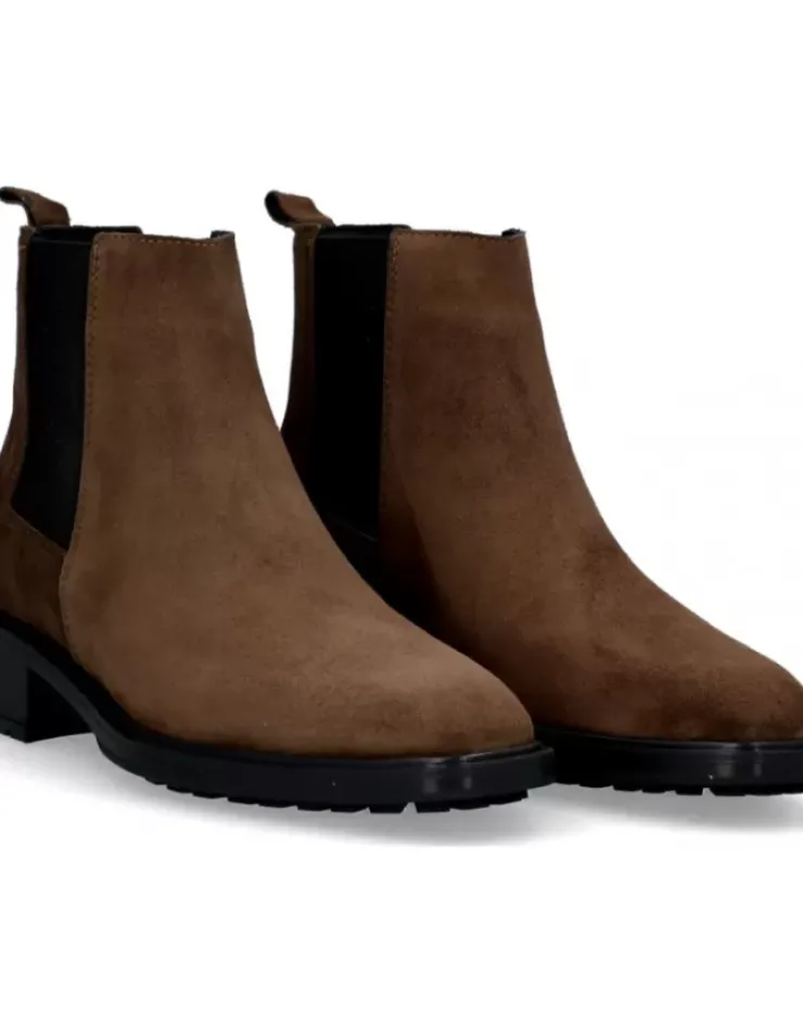 Botin Para Mujer Alpe Idaho, Fabricado En Piel (Baby Silk) De Color Arabica Con Tacon De 3,5 Cm, Suela Antideslizante Y Puntera Redonda, Sin Cierre Y Cana Baja.