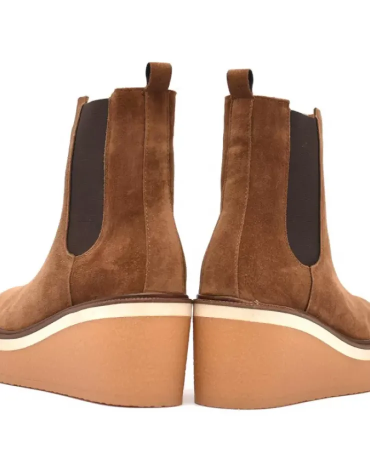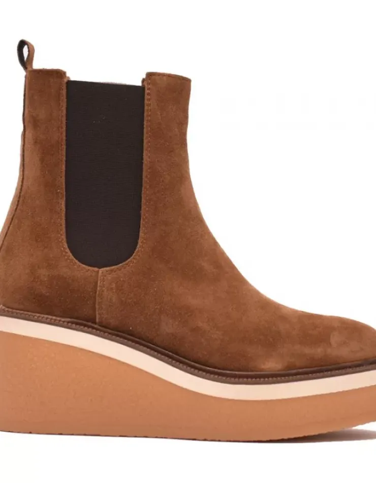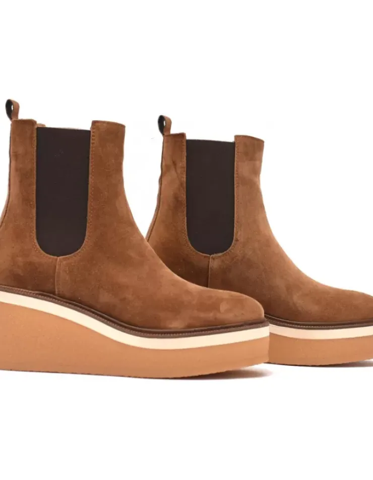 Botin Para Mujer Alpe Kiara, Fabricado En Piel (Baby Silk) De Color Cuero Sin Tacon, Suela Antideslizante Y Puntera Redonda, Sin Cierre Y Cana Baja.