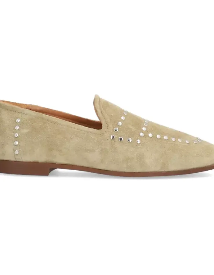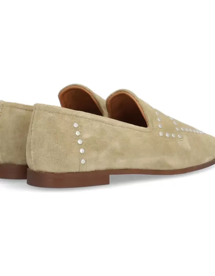 Mocasin Para Mujer Alpe New Roma, Fabricado En Piel (Baby Silk) De Color Tabaco Con Tacon De 1 Cm, Suela Antideslizante Y Puntera Cuadrada, Sin Cierre.