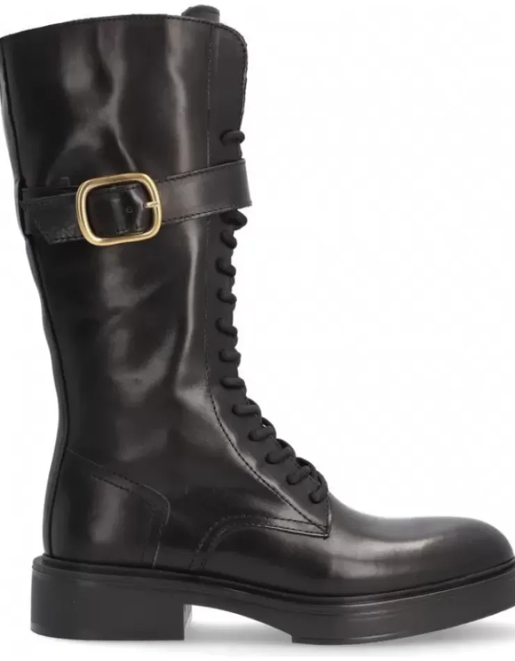 Bota Para Mujer Alpe Vogue, Fabricada En Piel (Becerro) De Color Negro Con Tacon De 3 Cm, Suela Antideslizante Y Puntera Redonda, Con Cierre Mediante Cremallera Y Cana Alta.