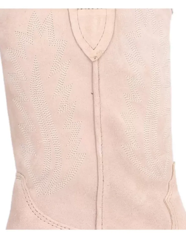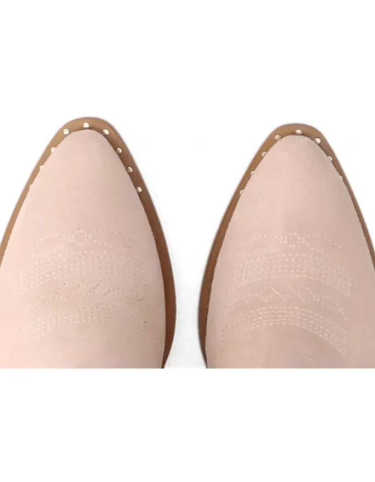 Bota Para Mujer Alpe Claire, Fabricada En Piel (Baby Silk) De Color Nude Con Tacon De 4 Cm, Suela Antideslizante Y Puntera Afilada, Sin Cierre Y Cana Media.