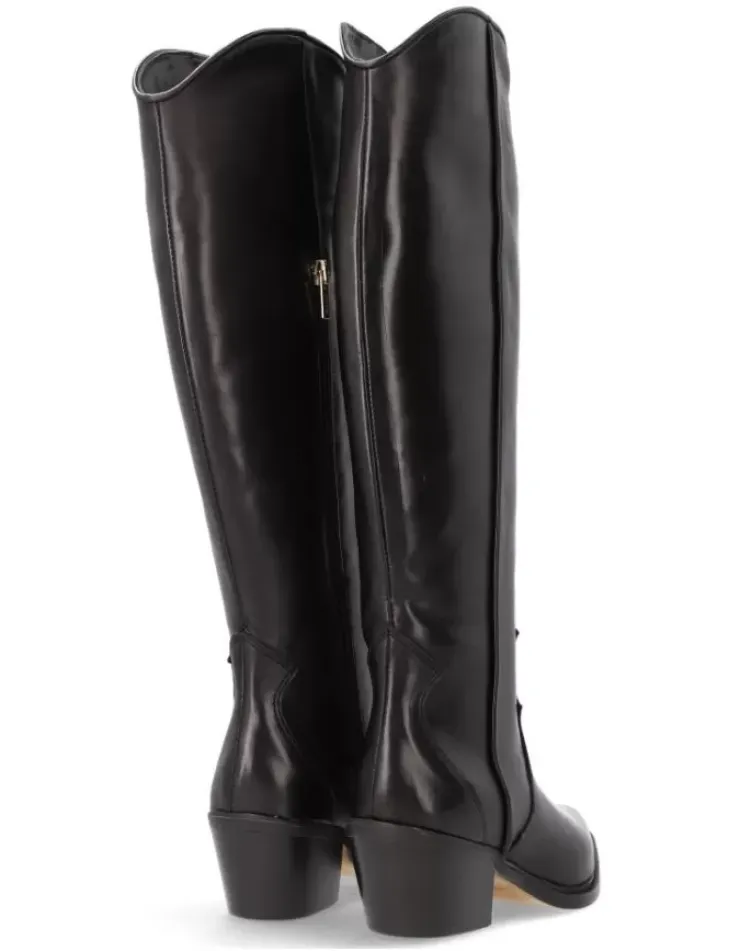 Bota Para Mujer Alpe Country, Fabricada En Piel (Becerro) De Color Negro Con Tacon De 5 Cm, Suela Antideslizante Y Puntera Afilada, Con Cierre Mediante Cremallera Y Cana Alta.