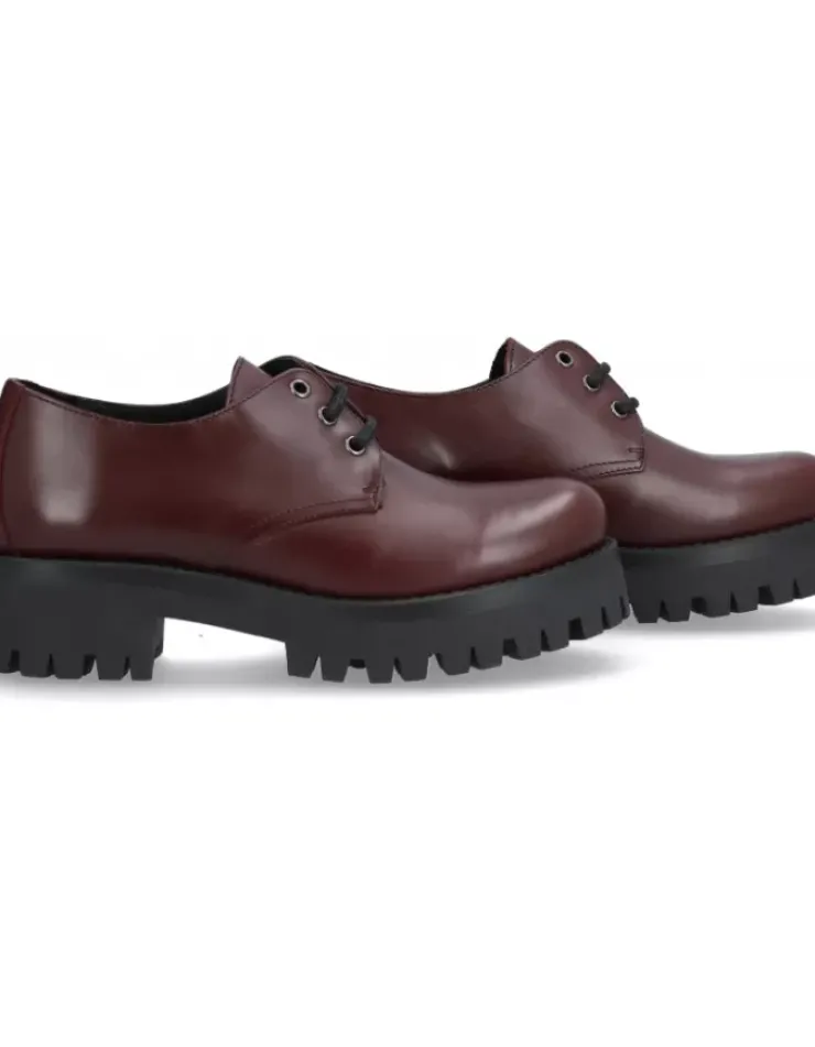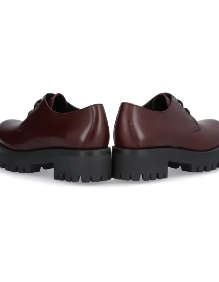 Zapato Para Mujer Alpe Eden, Fabricado En Piel (Piel) De Color Burdeos Con Sin Tacon De 2,5 Cm, Suela Pu Y Puntera Redonda, Con Cierre Mediante Cordon.