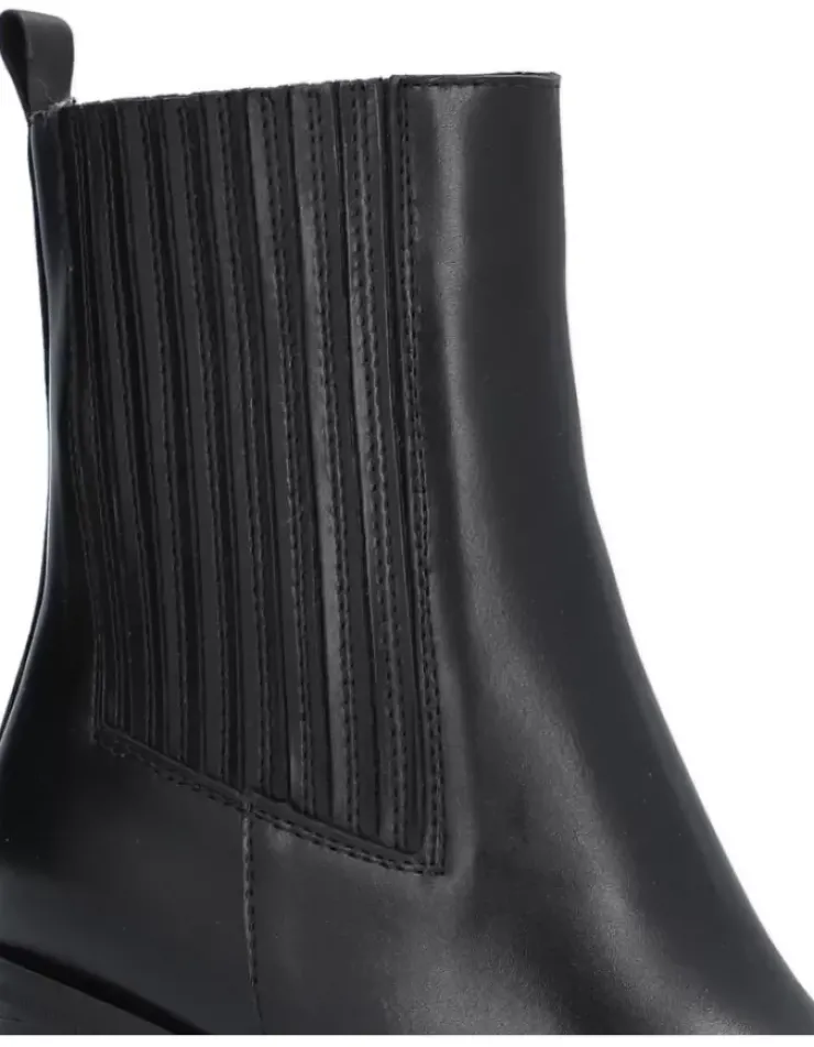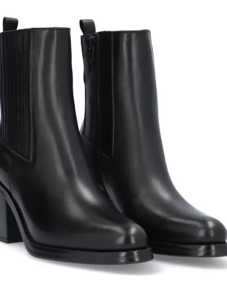 Botin Para Mujer Alpe Leyna, Fabricado En Piel (Becerrro) De Color Negro Con Tacon De 7 Cm, Suela Antideslizante Y Puntera Redonda, Con Cierre Mediante Cremallera Y Cana Baja.