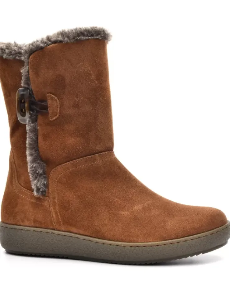 Botin Para Mujer Alpe Urban, Fabricado En Piel (Baby Silk) De Color Cuero Sin Tacon, Suela Antideslizante Y Puntera Redonda, Sin Cierre Y Cana Media.