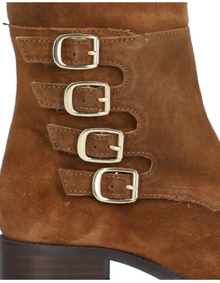 Bota Para Mujer Alpe Alain-2, Fabricada En Piel (Baby Silk) De Color Cuero Con Tacon De 3,5 Cm, Suela Antideslizante Y Puntera Redonda, Con Cierre Mediante Cremallera Y Cana Alta.
